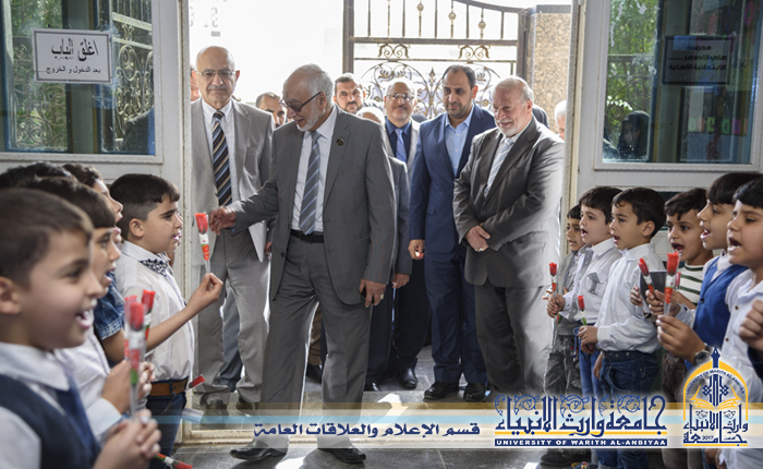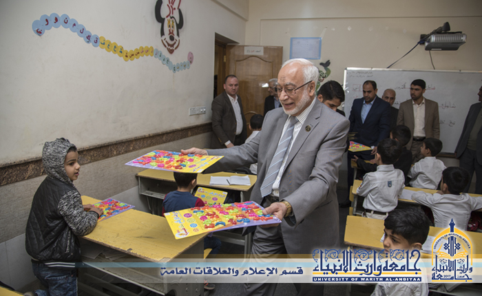 من اجل دعم مسيرة رعاية الايتام والمساهمة في بناء شخصية الطالب الجامعي زار وفد من اساتذة وطلبة جامعة وارث الانبياء مدارس علي الاصغر والسيدة رقية (عليهما السلام)للايتام، وقال الاستاذ الدكتور طالب حسن موسى رئيس الجامعة ان الاطفال الايتام هم مستقبلنا في العراق وهذه الزيارة هي بداية الطريق من اجل تعاون اوثق مع هذه الشريحة المهمة ، وعبر طلبة الجامعة بان هذه الزيارة جائت بمثابة العرفان لأيتام الشهداء الذي ضحو عن الوطن والمقدسات وان الاهتمام بهم واجب علينا جميعا