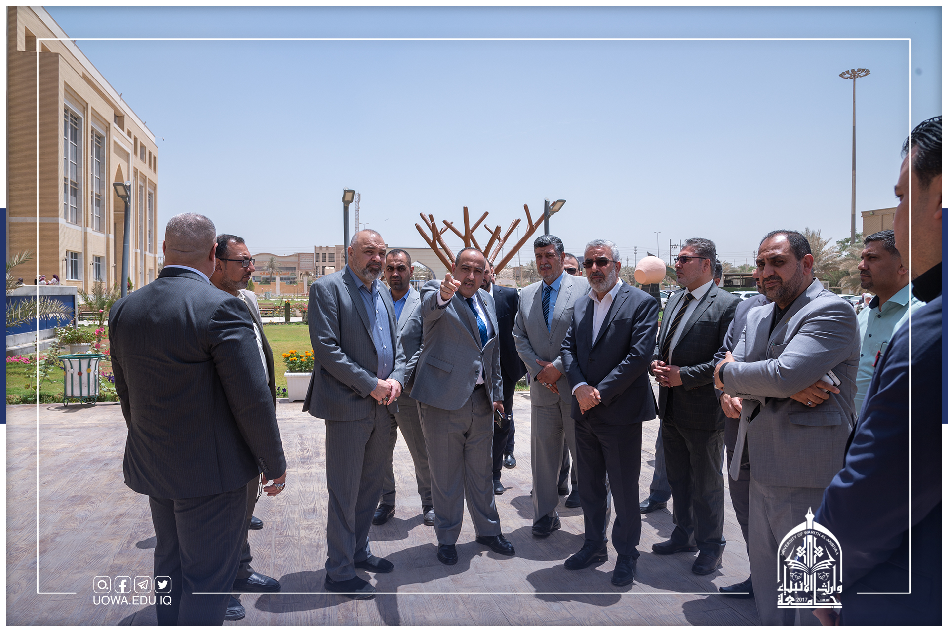 زار جناب الأمين العام للعتبة العلوية المقدسة السيد عيسى الخرسان يرافقه السيد نائب الامين العام للعتبة الحسينية المقدسة الدكتور علاء ضياء الدين، والوفد المرافق لهما جامعة وارث الانبياء(عليه السلام)، وكان باستقبالهما السيد رئيس الجامعة الاستاذ الدكتور ابراهيم الحياوي والسادة مساعدي رئيس الجامعة وعدد من عمداء الكليات، إذ  اطلع جناب الأمين العام على صرح الجامعة وأعرب عن اعجابة الشديد بما تمتلكه من امكانيات مادية وبشرية