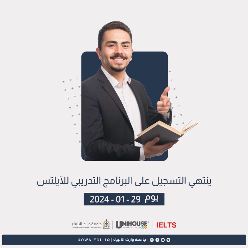 غداً الإثنين آخر موعد للتسجيل في البرنامج التدريبي للتحضير لامتحان الايلتس IELTS في جامعة وارث الأنبياء (عليه السلام)