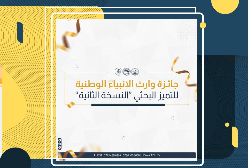 في إطار رفع مستوى البحث العلمي وتشجيع الباحثين، أعلنت جامعة وارث الأنبياء (عليه السلام) برعاية العتبة الحسينية المقدسة ووزارة التعليم العالي والبحث العلمي عن إطلاق (جائزة وارث الأنبياء الوطنية للتميز البحثي) في نسختها الثانية.