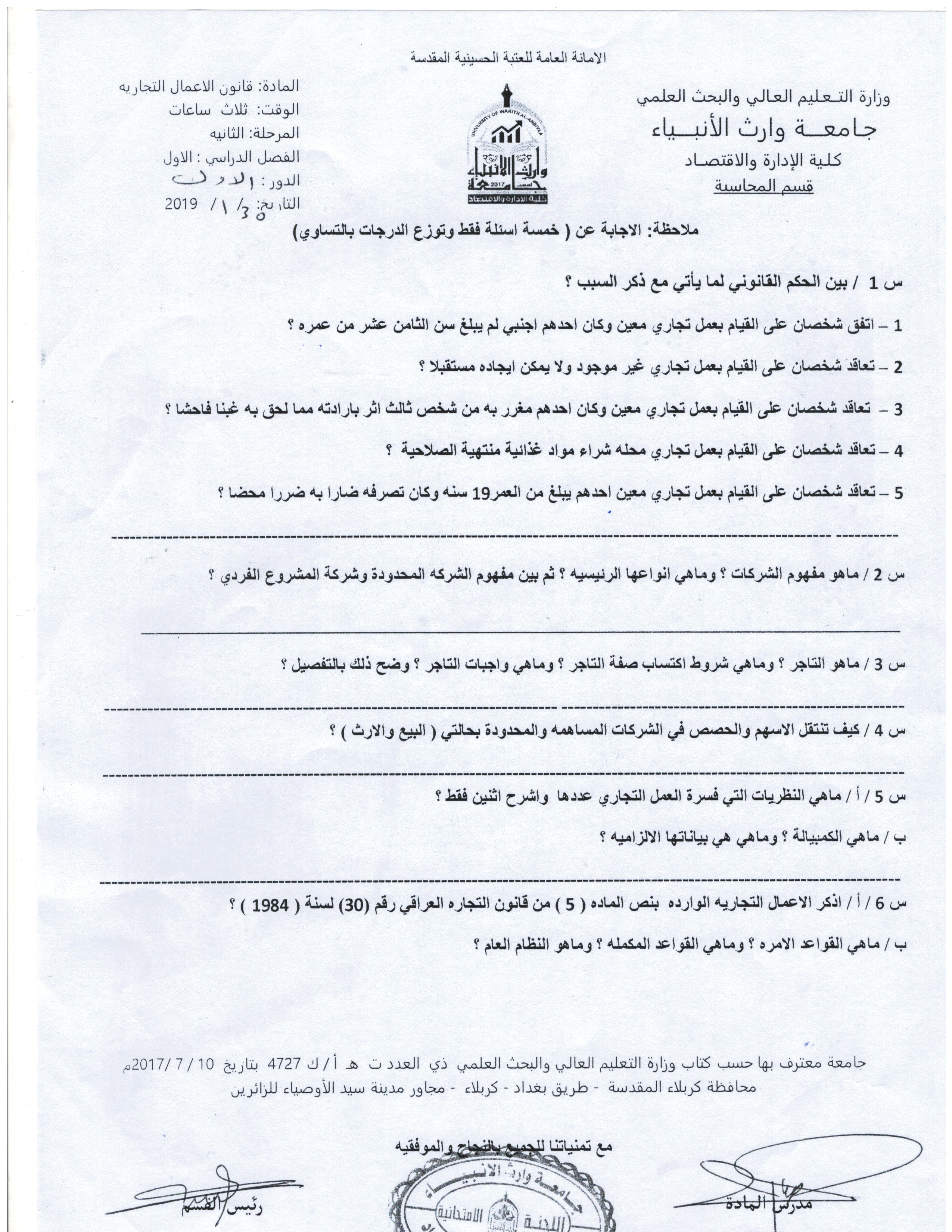 قامة عمادة الكلية ومجلسها الممثل بالاستاذ الدكتور عامر العطوي ود.نضال المالكي ود.فهد الشمري بتكريم الطلبة الاوائل للدراسة الصباحية والمسائية للمرحلتين الاولى والثانية وللقسمين المحاسبة وادارة اعمال في يوم الاحد 3/3/2019 وكذلك تم تكريم افضل طالبة محتشمة لكل قسم وقد حضر مجموعة من السادة التدريسيين والطلبة حفل التكريم