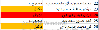 جدول اسماء الطلبة
