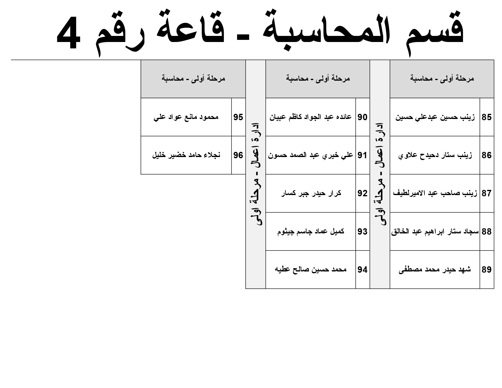 خارطة جلوس الطلبة - قسم المحاسبة المرحلة الأولى