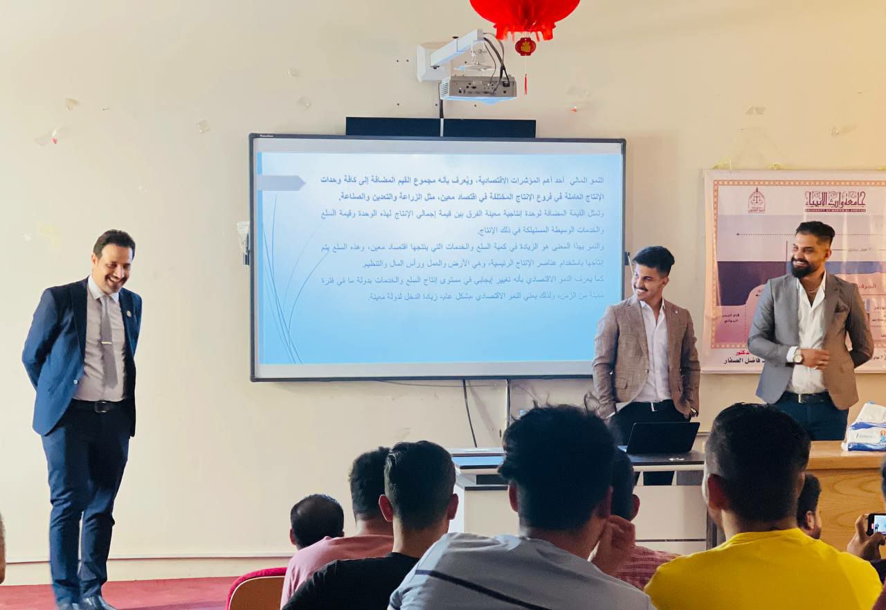ضمن النشاطات الطلابية العلمية في كلية الادارة والاقتصاد قدم كل من الطالب امير هاني مزبان والطالب زيد فيصل حسين من طلبة المرحلة الاولى ندوة علمية بعنوان ( النمو المالي واثرة في الاقتصاد العام ) باشراف رئيس القسم م.د محمد مجيد الحمداني .والتي حضرها مجموعة من الاساتذة وطلبة القسم وفي نهاية الندوة تم تكريمهما بشهادة شكر وتقدير من عمادة الكلية ورئاسة القسم على جهودهما المبذولة