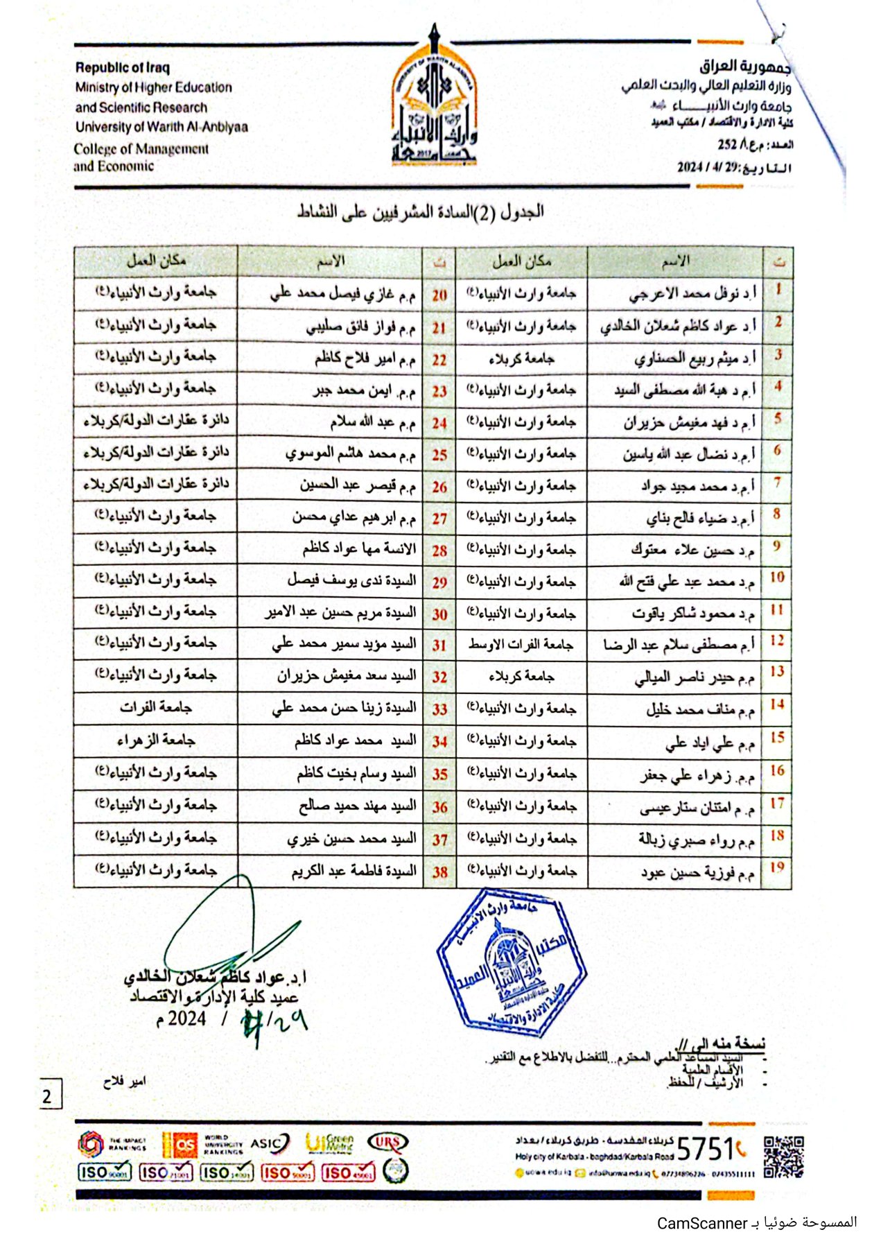 عنوان الجامعة العراق - كربلاء المقدسة / طريق بغداد - كربلاء