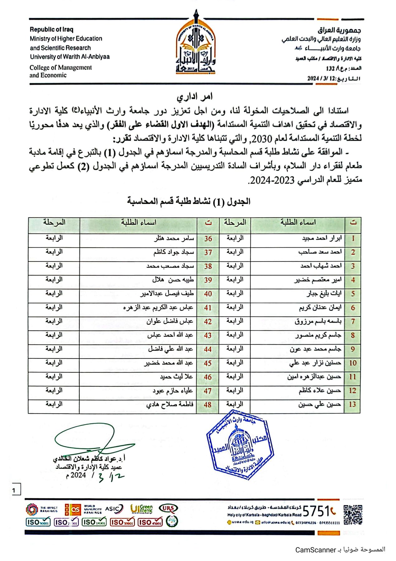 أقامت كلية الإدارة والاقتصاد، بمشاركة طلبتها، مأدبة طعام لفقراء دار السلام، ضمن إطار العمل التطوعي والجهود الإنسانية التي تهدف إلى دعم المجتمع.