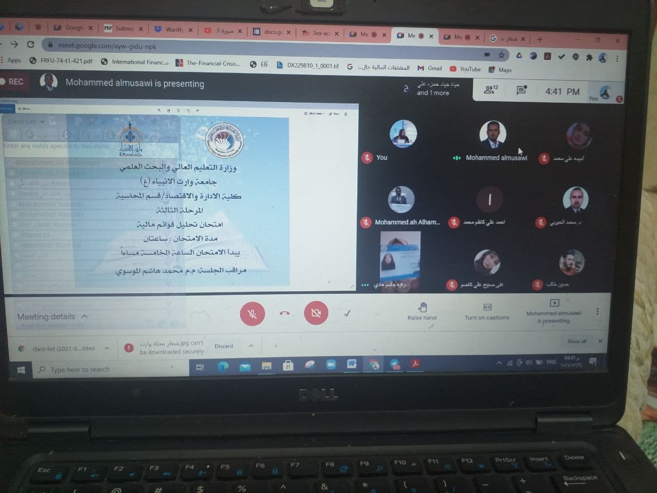بإشراف مباشر من السيد عميد كلية الادارة والاقتصاد "أ.د.عوادالخالدي" والسادة رؤساء الاقسام (م.د.فهد الشمري/ رئيس قسم ادارة الاعمال و م.د.هبة الله مصطفى/ رئيس قسم المحاسبة)،