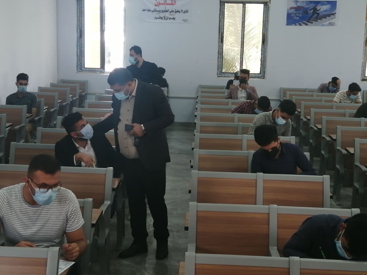 جانب من القاعات الامتحانية لقسم الهندسة المدنية في جامعه وارث الأنبياء ليوم الثلاثاء المصادف ٦ / ٤ / ٢٠٢١ و الذي يبين الاجراءات الوقائية العالية أثناء اداء الامتحانات النهائية للفصل الدراسي الأول - الدور الأول.