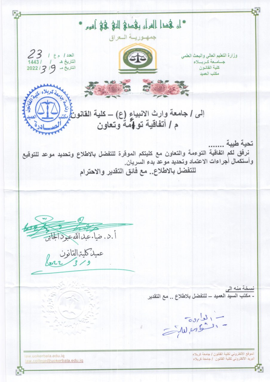 اتفاقية توأمة وتعاون مع جامعة كربلاء
