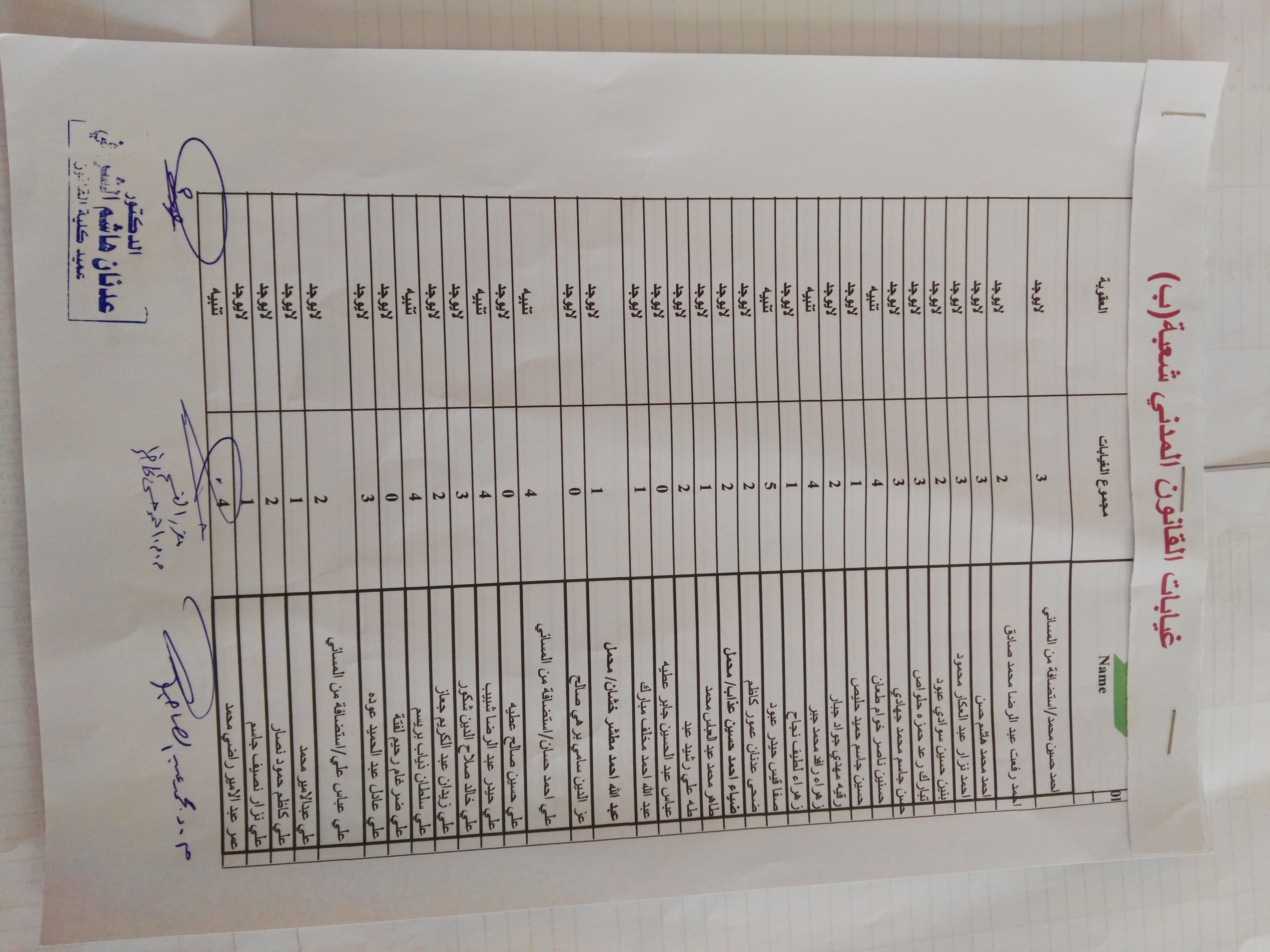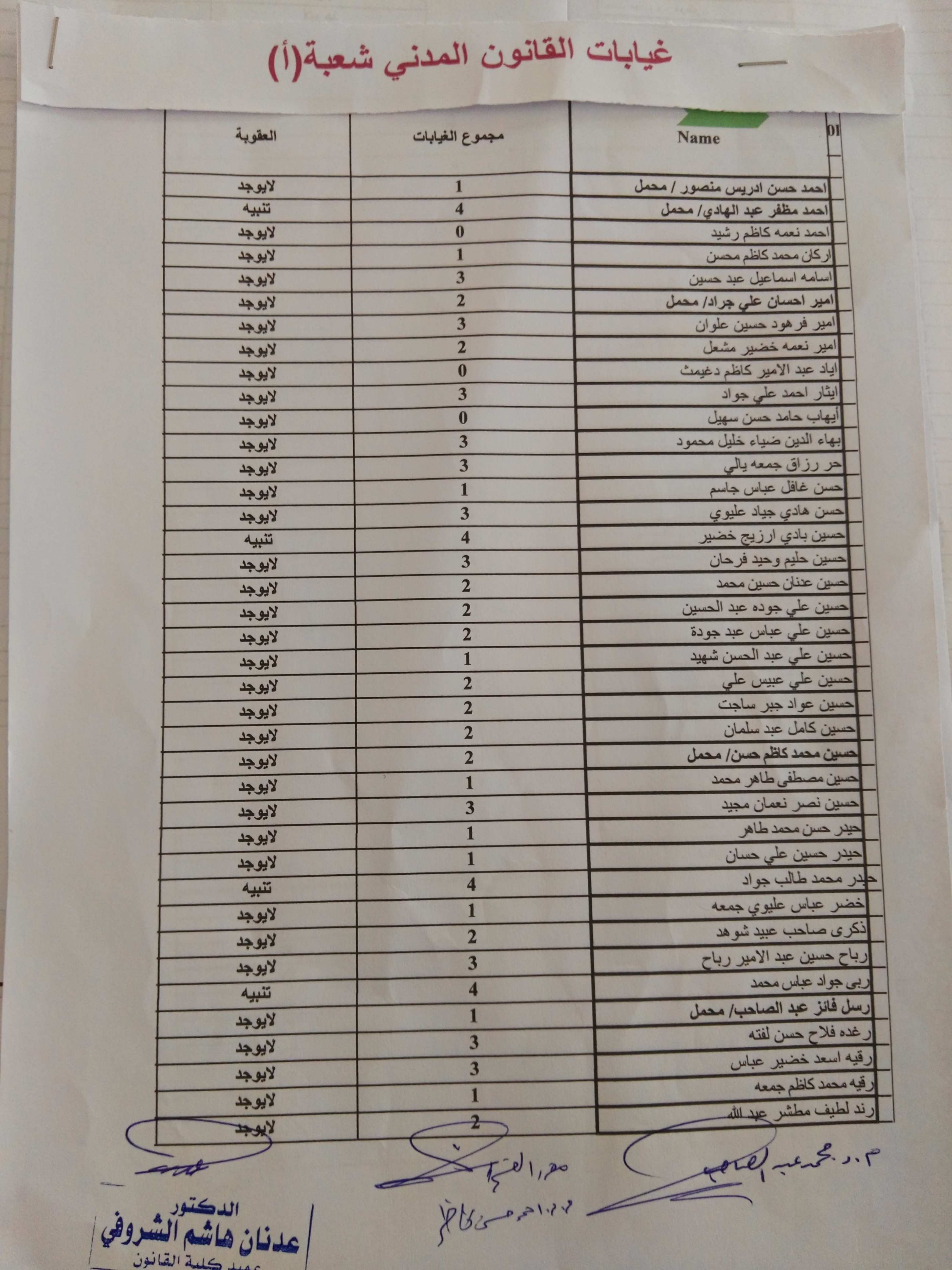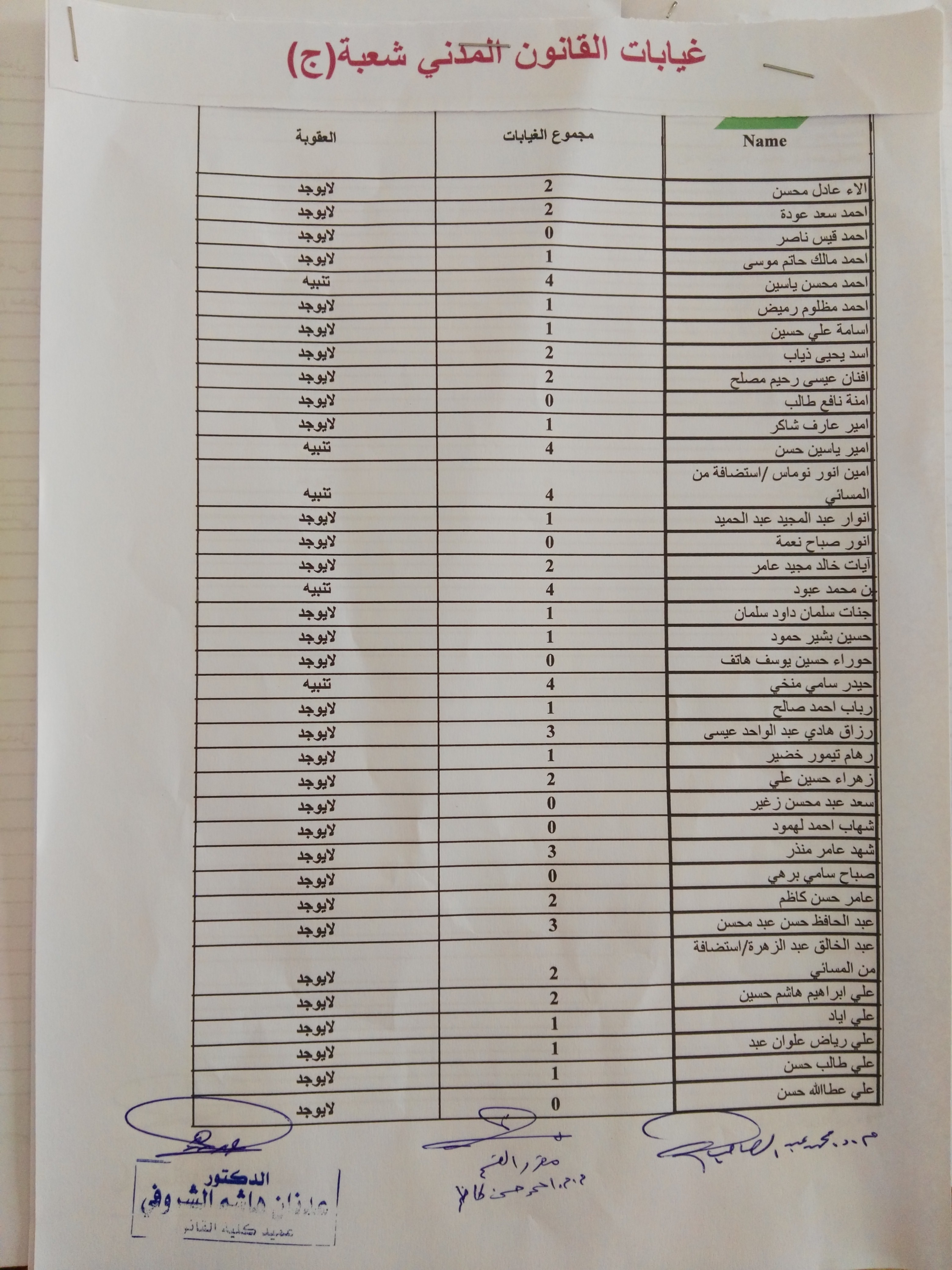 غيابات مادة القانون المدني(المرحلة الثانية)