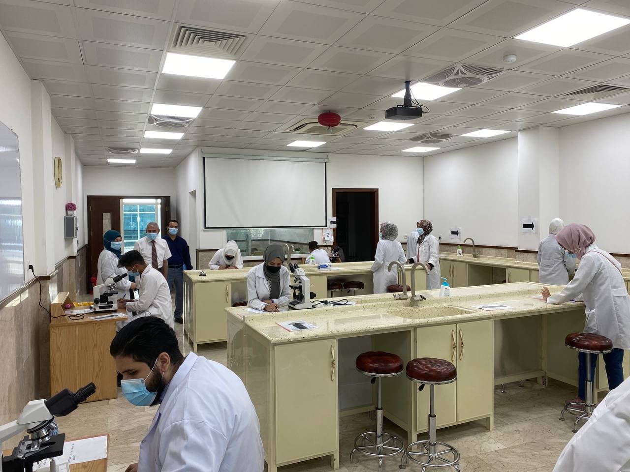 يواصلُ طلبة كلية الطب في جامعة وارث الأنبياء (عليه السلام) الامتحانات العملية، بإشراف السيد العميد الأستاذ الدكتور فالح البياتي المحترم و أساتذة وتدريسيي المواد العلمية في الكلية، مع الالتزام بتوجيهات خلية الأزمة بخصوص التباعد الاجتماعي وارتداء الكمامات. و زيارة  اللجنة الوزارية الخاصة بمتابعة الامتحانات النهائية  والمؤلفة من عدد من استاذة جامعة كربلاء برئاسة السيد رئيس جامعة كربلاء الاستاذ الدكتور باسم خليل السعيدي المحترم  كلية الطب جامعة وارث الانبياء (ع) لمتابعة الامتحانات الحضورية في الكلية.