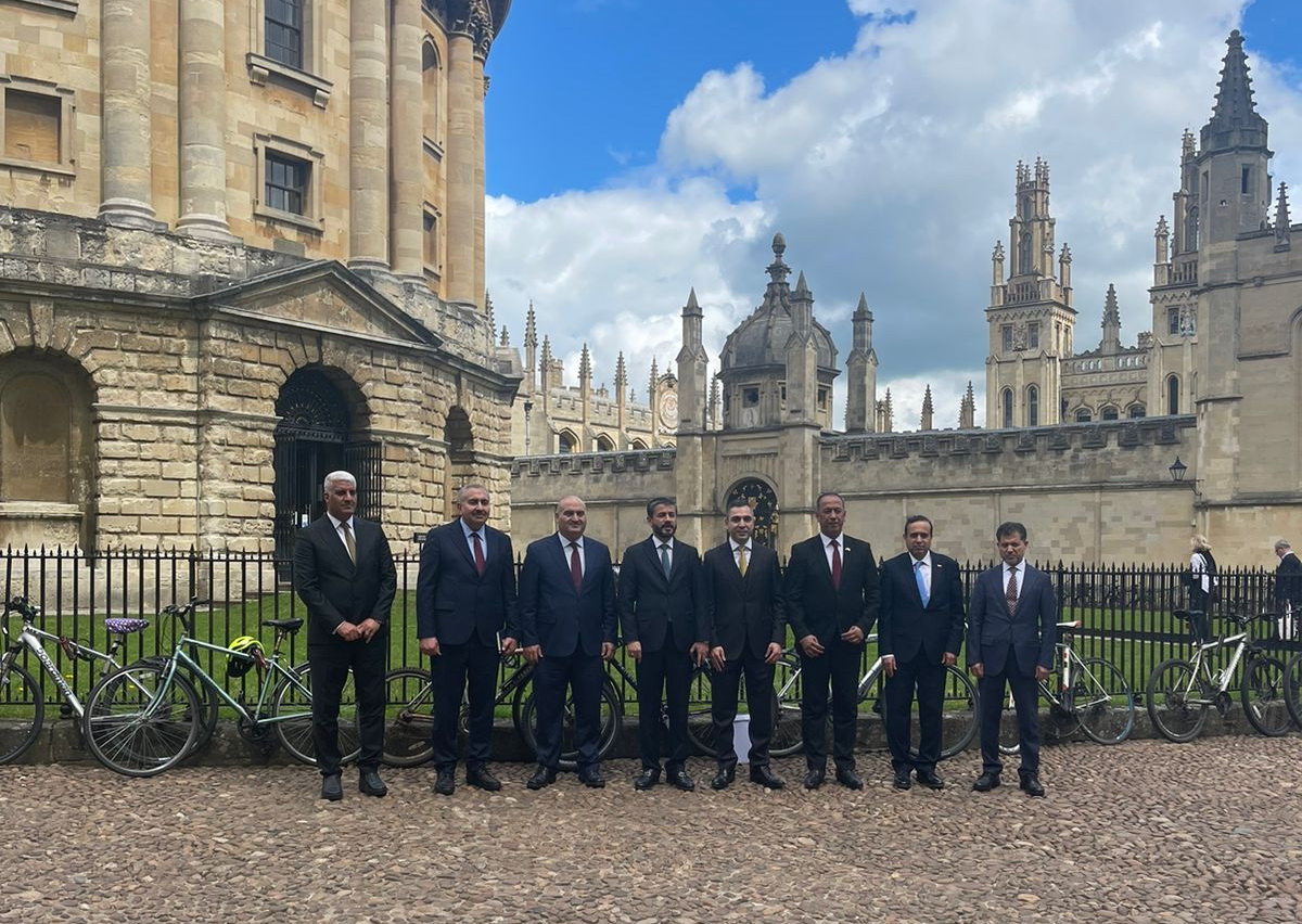 زار وزير التعليم العالي والبحث العلمي الدكتور نعيم العبودي جامعة أكسفورد واطلع على بيئتها التعليمية وأروقتها ومكتبتها والتقى مع عدد من ممثلي الجامعة ومنهم رئيس كلية ولفسون السير تيم هيتشنز.