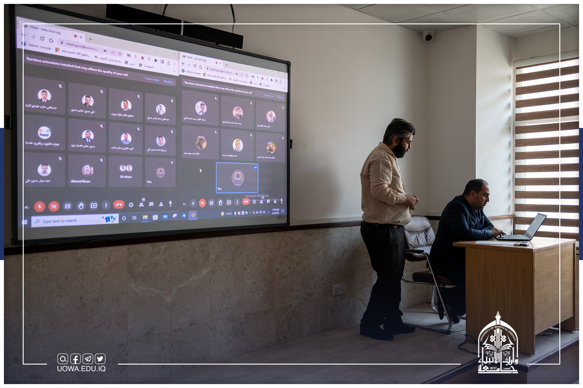 بإشراف السيد رئيس الجامعة الاستاذ الدكتور ابراهيم الحياوي والسيد المساعد العلمي الاستاذ الدكتور عباس الدعمي والسيد مدير مركز التعليم المستمر الدكتور حيدر محمد علي الغانمي وبالتعاون مع مركز الحاسبة الالكترونية وشعبة التعليم الالكتروني في الجامعةأجرت كلية التمريض الامتحان التقويمي الوزاري ،حيث أدى الطلبة الامتحان بعد استلام الاسئلة الوزارية من قبل الفريق الالكتروني للجامعة الذي بدوره وزع الاسئلة على الطلبة، وتابع الفريق الوزاري من خلال المنصة الالكترونية المخصصة للامتحان التقويمي فضلا عن اساتذة داخل القاعات الامتحانية لمتابعة سير العملية الامتحانية داخل الكلية.يذكر أن جامعة وارث الانبياء (عليه السلام) قد جهزت مسبقاً 8 مختبرات علمية بأحدث الوسائل التعليمية الحديثة لاجراء الامتحان التقويمي.