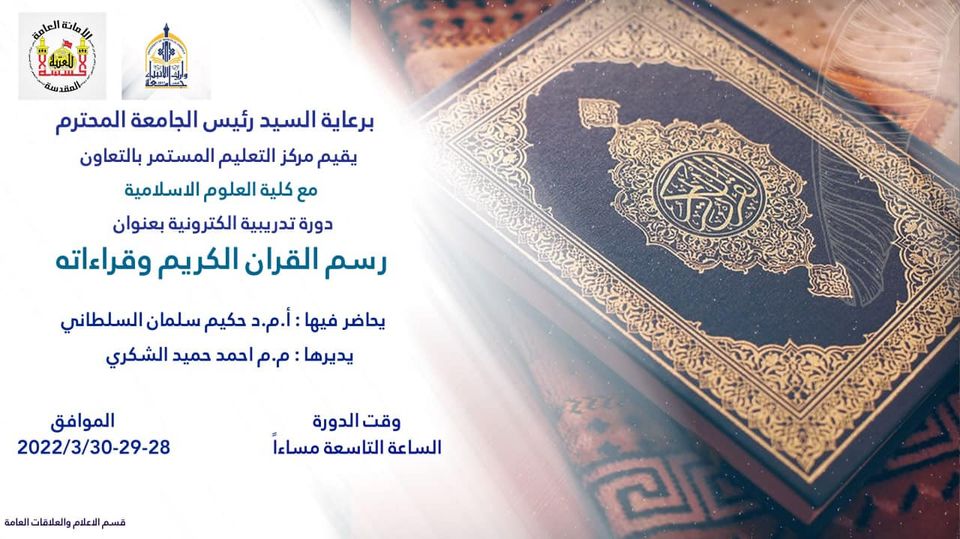 اعلان: اقامة دورة بعنوان رسم القران الكريم وقراءاتة