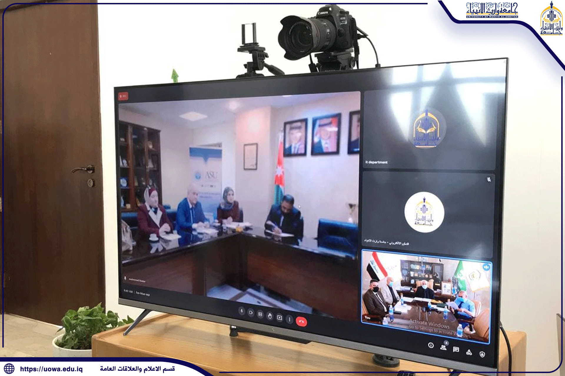 سعيا منها للارتقاء بخدماتها التعليمية اجتمعت رئاسة جامعة وارث الانبياء (عليه السلام ) مع رئاسة جامعة العلوم التطبيقية في المملكة الاردنية الهاشمية من اجل عقد اتفاقية تعاون علمي بين الجامعتين في المجالات الطبية والهندسية جاء ذلك خلال أجتماع عبر المنصات إلالكترونية بحضور السيد رئيس الجامعة الاستاذ الدكتور طالب حسن موسى و المساعد الاداري وعمداء كليتي الطب البشري والتمريض .يذكر ان جامعة وارث الانبياء ( عليه السلام ) تحرص على التواجد الدائم في الميادين العلمية والاكاديمية العالمية والمحلية بصورة مستمرة