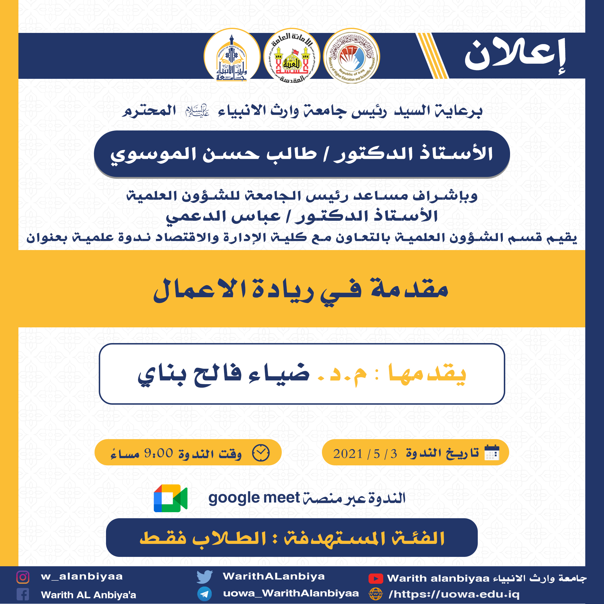 #هيئة_التعليم_العالي_والبحث_العلمي#جامعة_وارث_الانبياء_عليه_السلام#قسم_الاعلام_والعلاقات_العامة