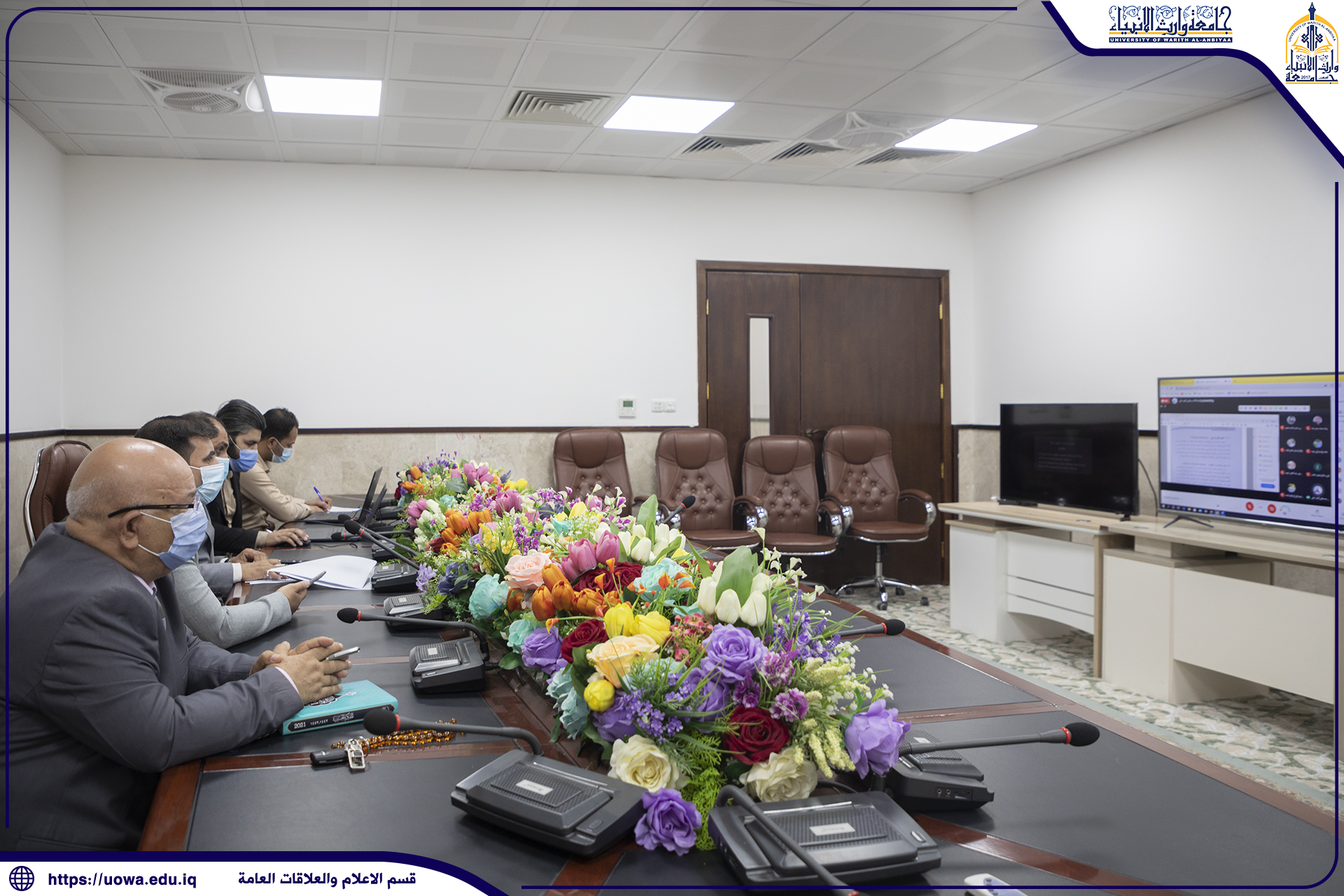 اجتمعت اللجنة المركزية لمراقبة سير المحاضرات الإلكترونية في جامعة وارث الانبياء(عليه السلام) برئاسة السيد المساعد العلمي الاستاذ الدكتور عباس الدعمي بكادر عمادة كلية الادارة والاقتصاد متمثلة بالسيد عميد الكلية الأستاذ الدكتور عواد الخالدي ، حيث اطلعت اللجنة على المحاضرات الإلكترونية المقدمة لطلبة الكلية والوقوف على المعوقات والمشاكل التي قد تواجههم والعمل على حلها بالسرعة الممكنة لتحقيق الفائدة المثلى لطلبتنا الأعزاء .