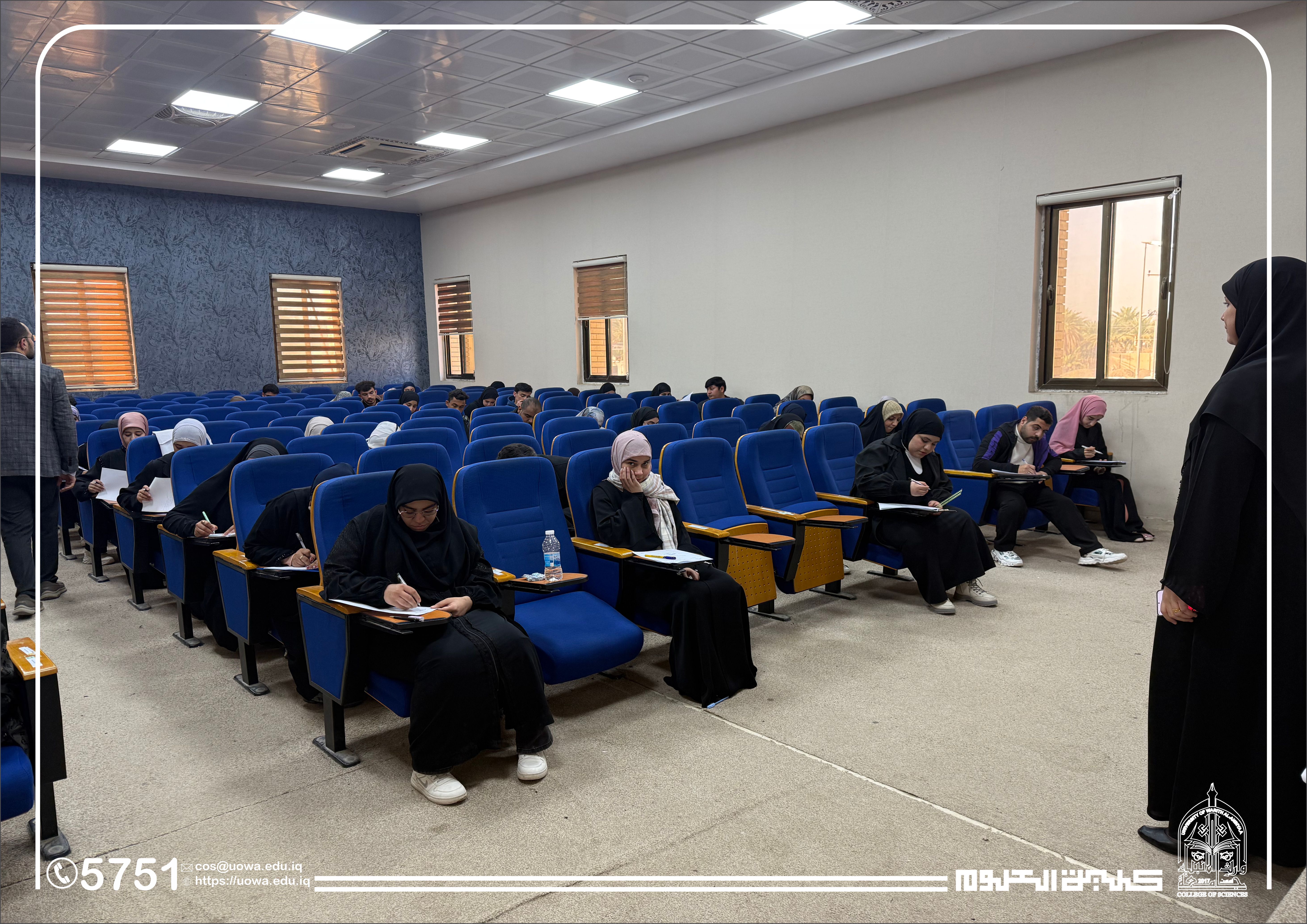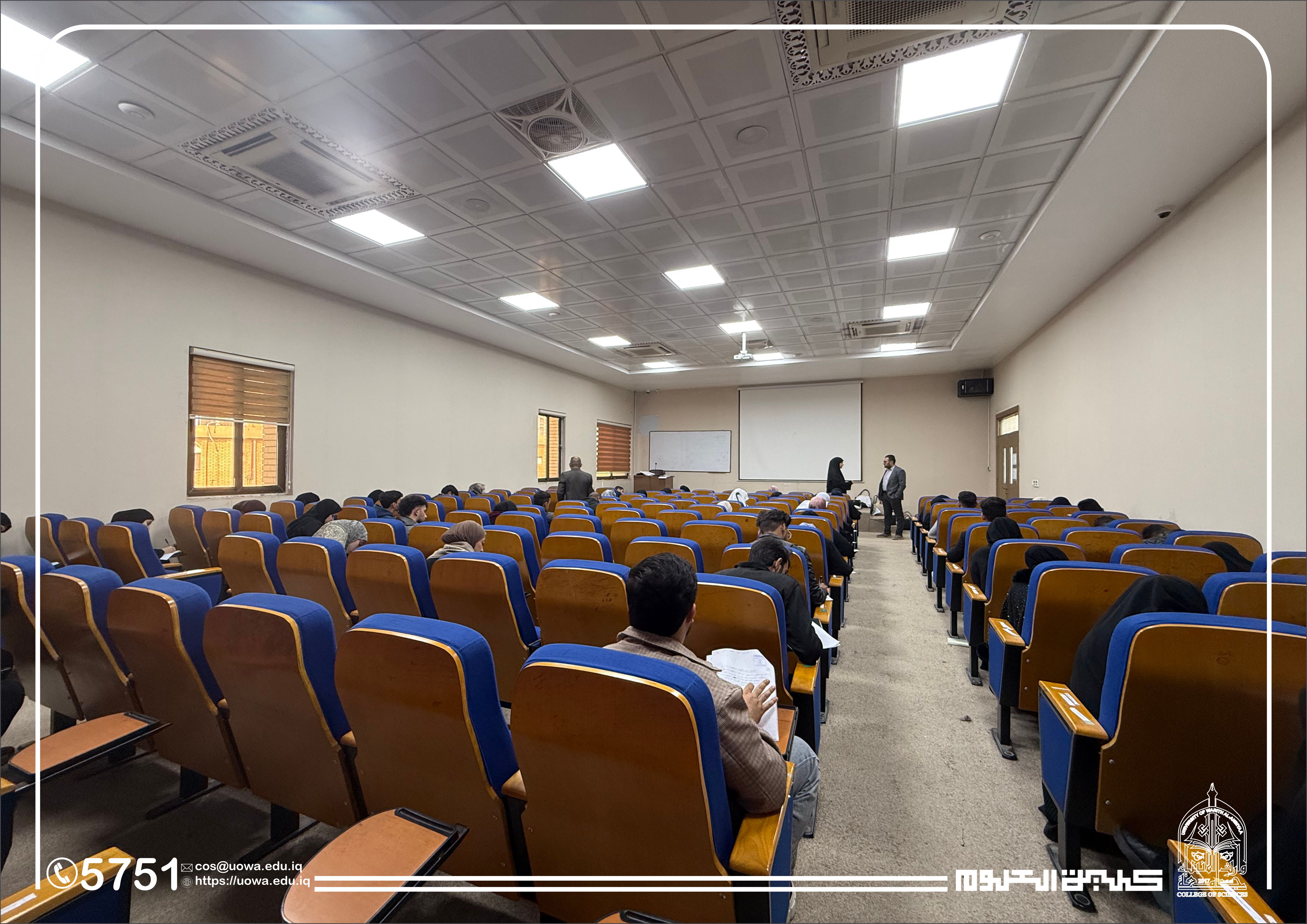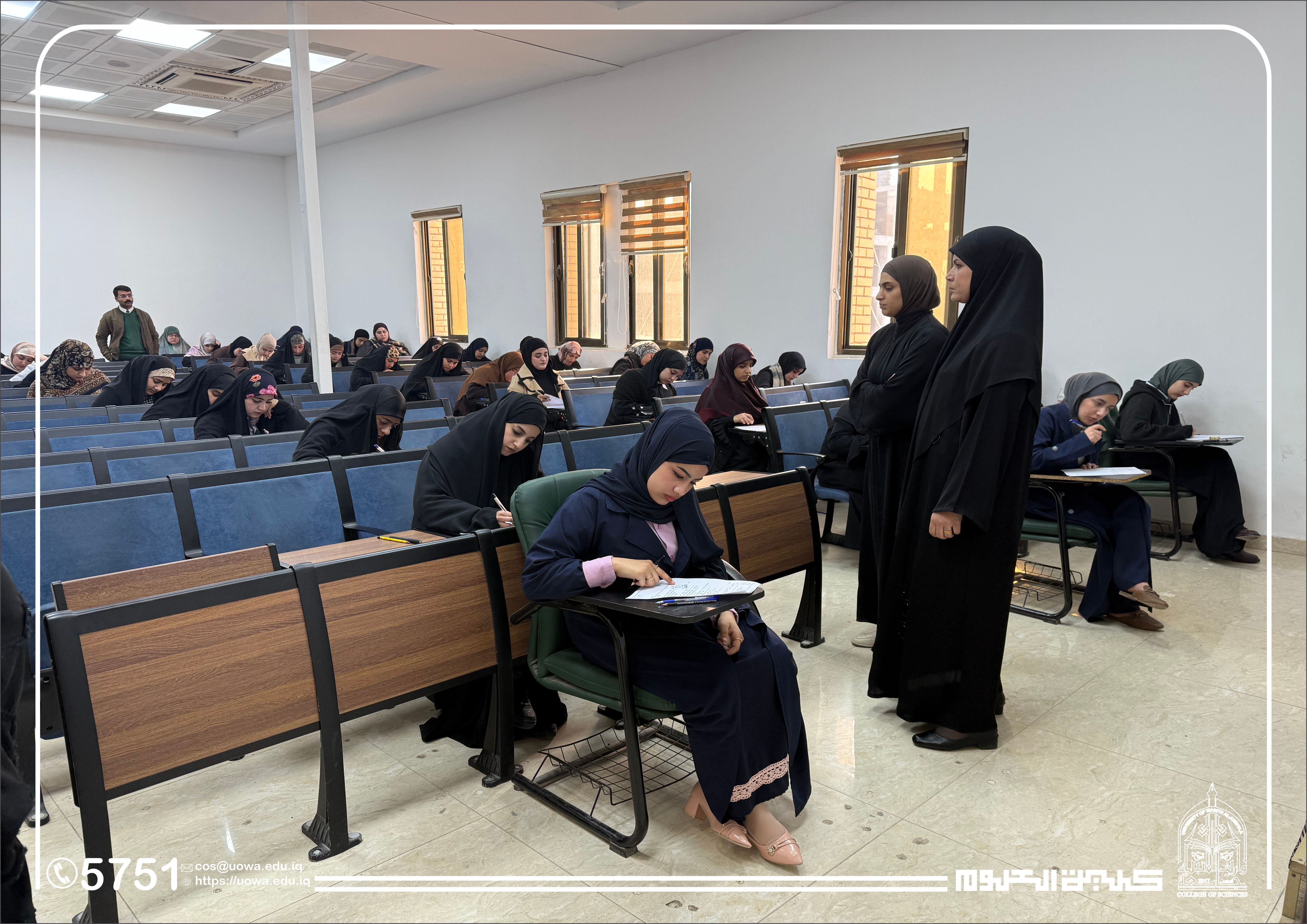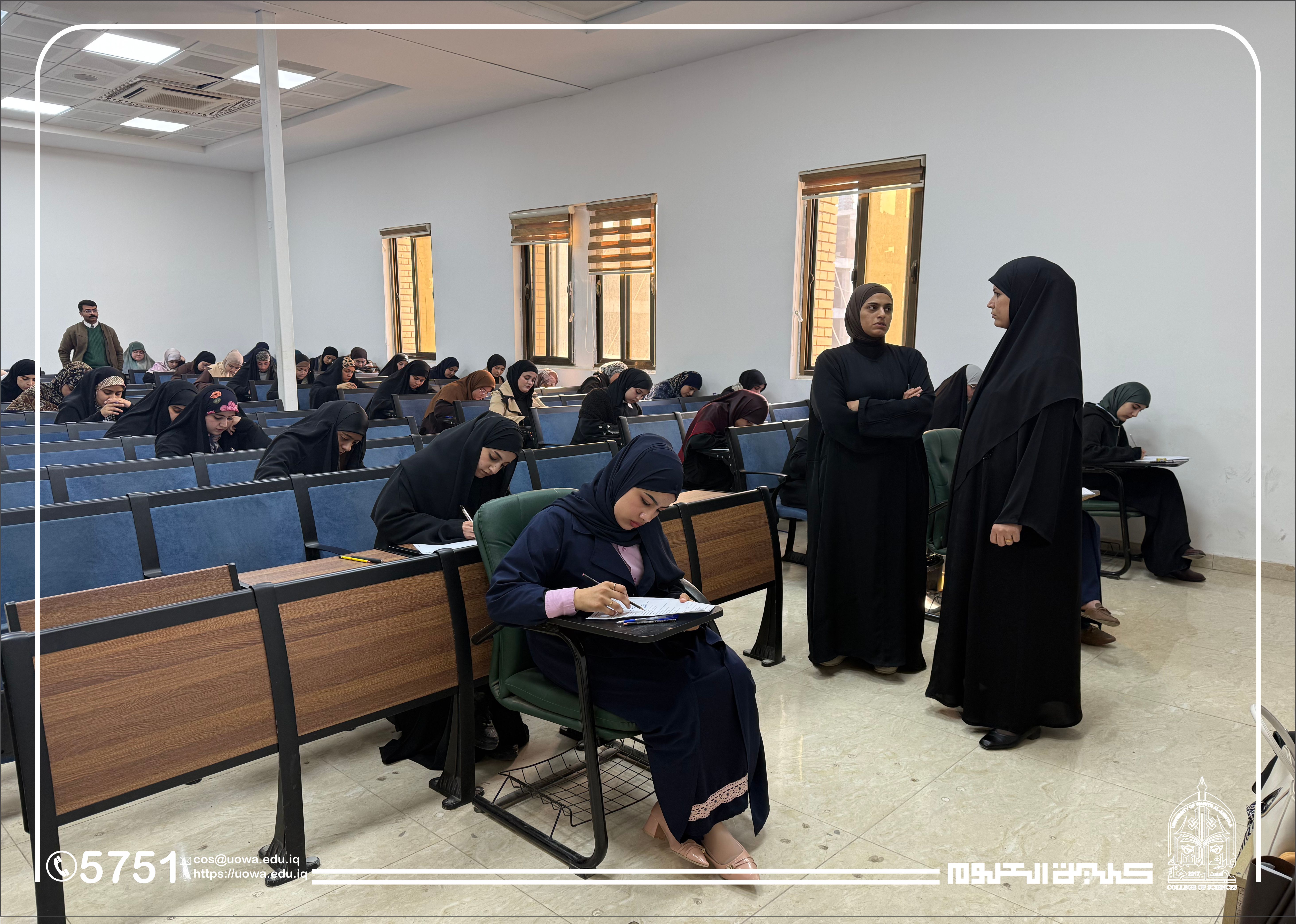 في إطار متابعته المستمرة للمسيرة العلمية وتوفير البيئة الامتحانية الملائمة، أجرى السيد عميد كلية العلوم في جامعة وارث الأنبياء (عليه السلام) جولة تفقدية للقاعات الامتحانية، وذلك لمتابعة سير امتحانات منتصف الفصل الدراسي (Midterm) لطلبة المرحلة الأولى في قسمي الفيزياء الطبية و الأدلة الجنائية.