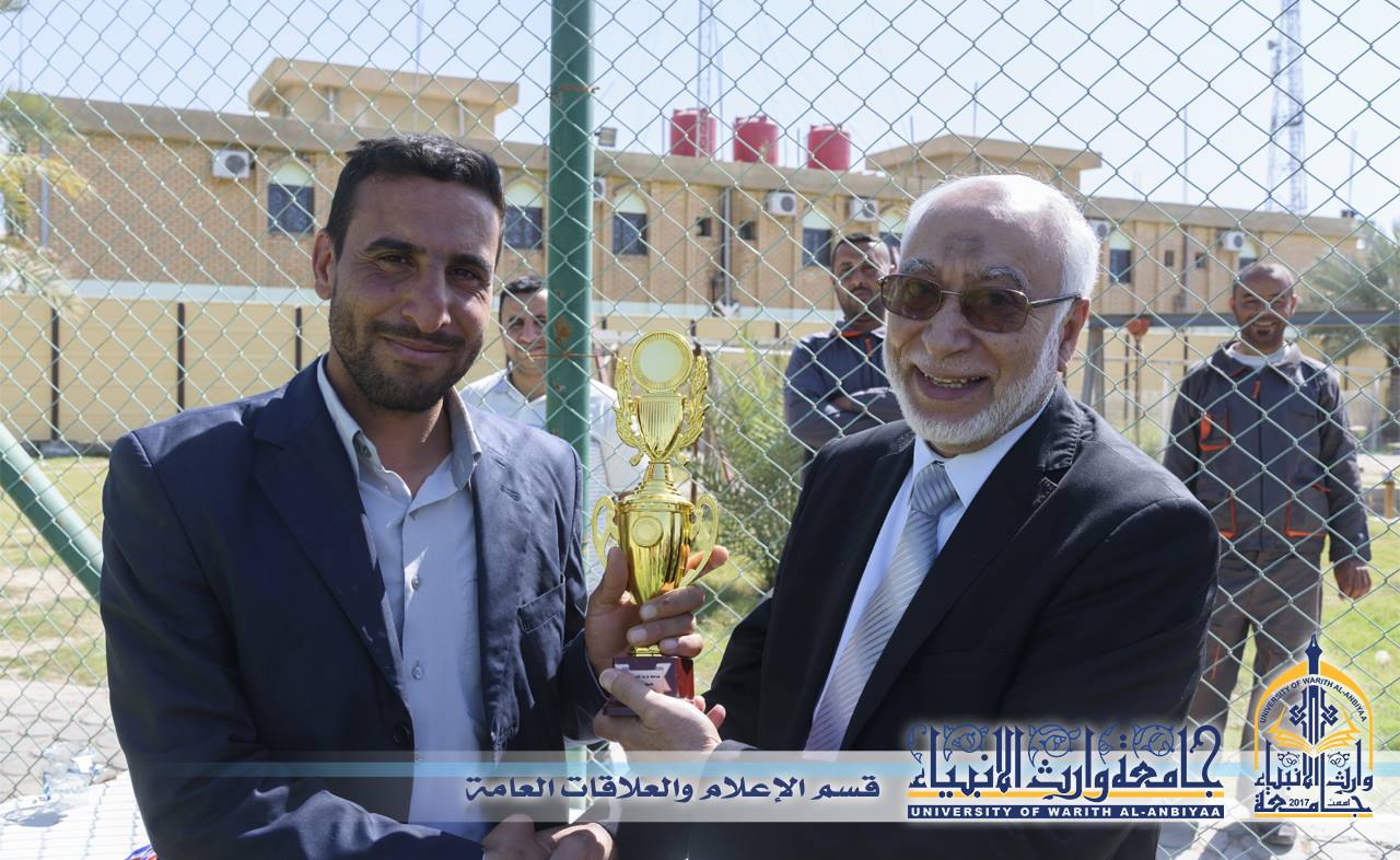 اقام قسم النشاطات الطلابية بطولة موظفي جامعة وارث الانبياء والتي اقُيمت على ملعب الجامعة بمشاركة ثمانية فرق من اقسام وكليات الجامعة، وقال رئيس قسم النشاطات الطلابية م.م. همام الخفاجي اختتمت البطولة بالمباراة النهائية التي جرت بين فريقي قسم الخدمات العامة (باللون البرتقالي) وفريق رئاسة الجامعة (باللون الاصفر ) وانتهت بفوز فريق الخدمات على فريق الرئاسة بنتيجة ٥-١ وبحضور السيد رئيس الجامعة الذي وزع جوائز البطولة للفائزين.