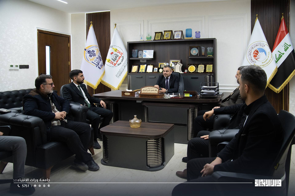في إطار المتابعة المؤسسية وتطوير الأداء الإداري، عقد رئيس جامعة وارث الأنبياء (ع) الأستاذ الدكتور إبراهيم سعيد الحياوي، يرافقه المساعد العلمي الأستاذ الدكتور واقد الموسوي، لقاءً مع فريق التسجيل في الجامعة، عقب مباشرة طلبة المرحلة الأولى بالدوام الرسمي.