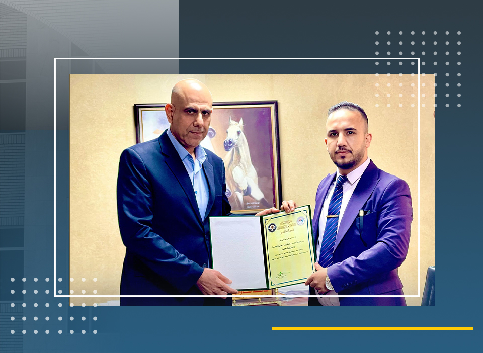وقام بتسلم الشهادة التقديرية نيابةً عن كلية الهندسة، المدرس المساعد حسين الغانمي، رئيس قسم ضمان الجودة.