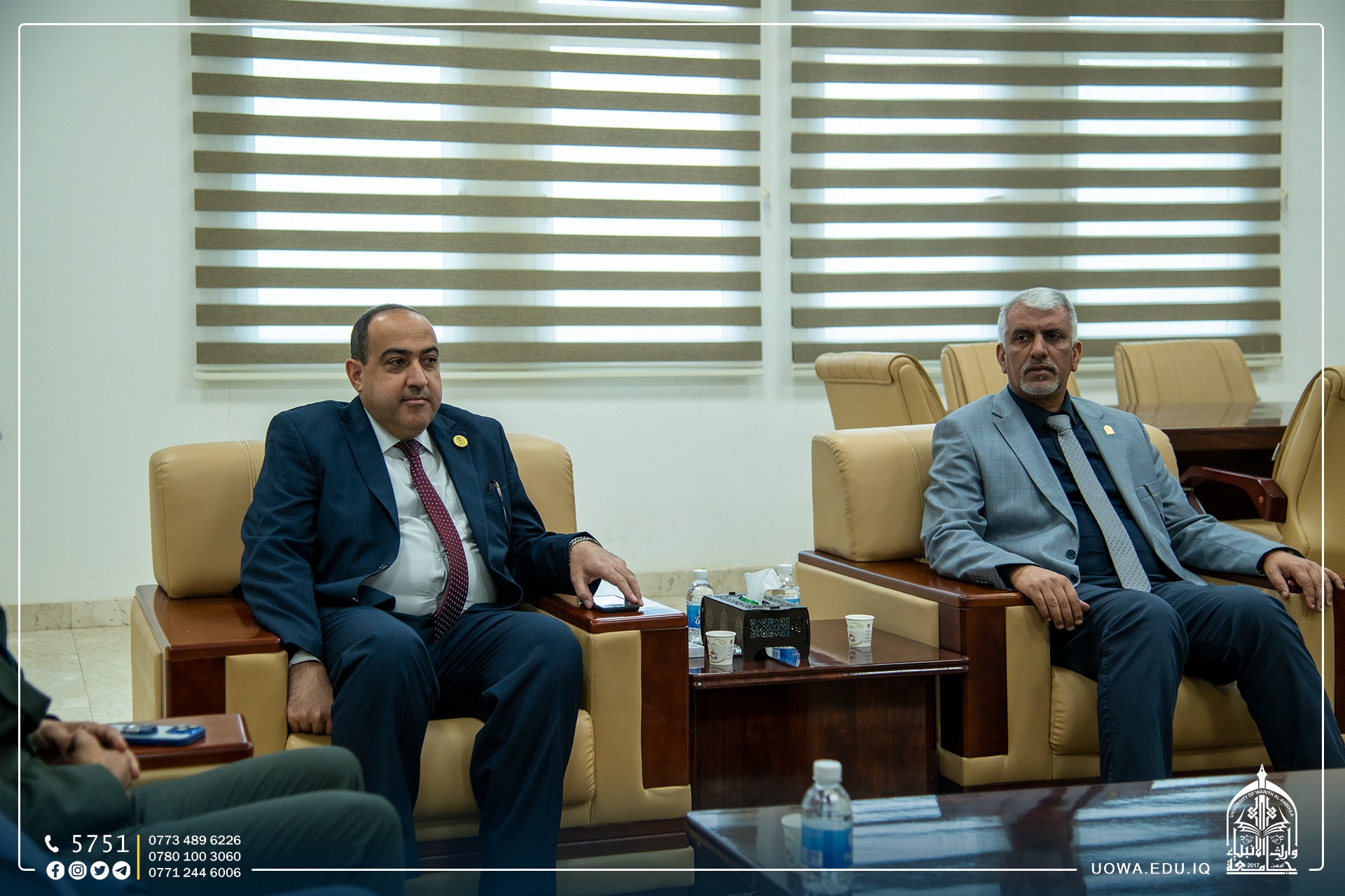 استضاف السيد رئيس الجامعة الاستاذ الدكتور ابراهيم الحياوي في مكتبه الخاص، سماحة الشيخ عبد المهدي الكربلائي(دام عزه) ومعالي وزير التعليم الدكتور نعيم العبودي والسيد محافظ كربلاء المهندس نصيف الخطابي والسيد الامين العام للعتبة الحسينية الاستاذ حسن رشيد والدكتور ستار الساعدي رئيس هيئة الصحة والتعليم الجامعي.