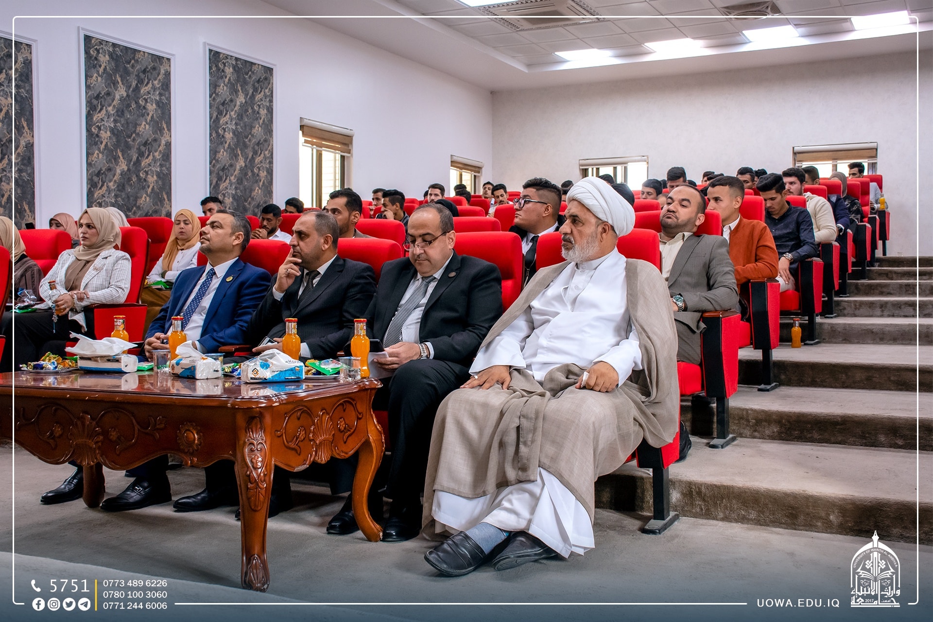 استضافت كلية العلوم الاسلامية في جامعة وارث الانبياء(عليه السلام) سماحة السيد رشيد الحسيني (دام توفيقه) لالقاء محاضرة فكرية لطلبة الجامعة، وتناولت المحاضرة عدد من التساؤلات الفكرية والعقائدية وكيفية الاجابة عنها في زمن غيبة الامام المهدي(عج)، وماهي واجبات المكلف في زمن الغيبة.