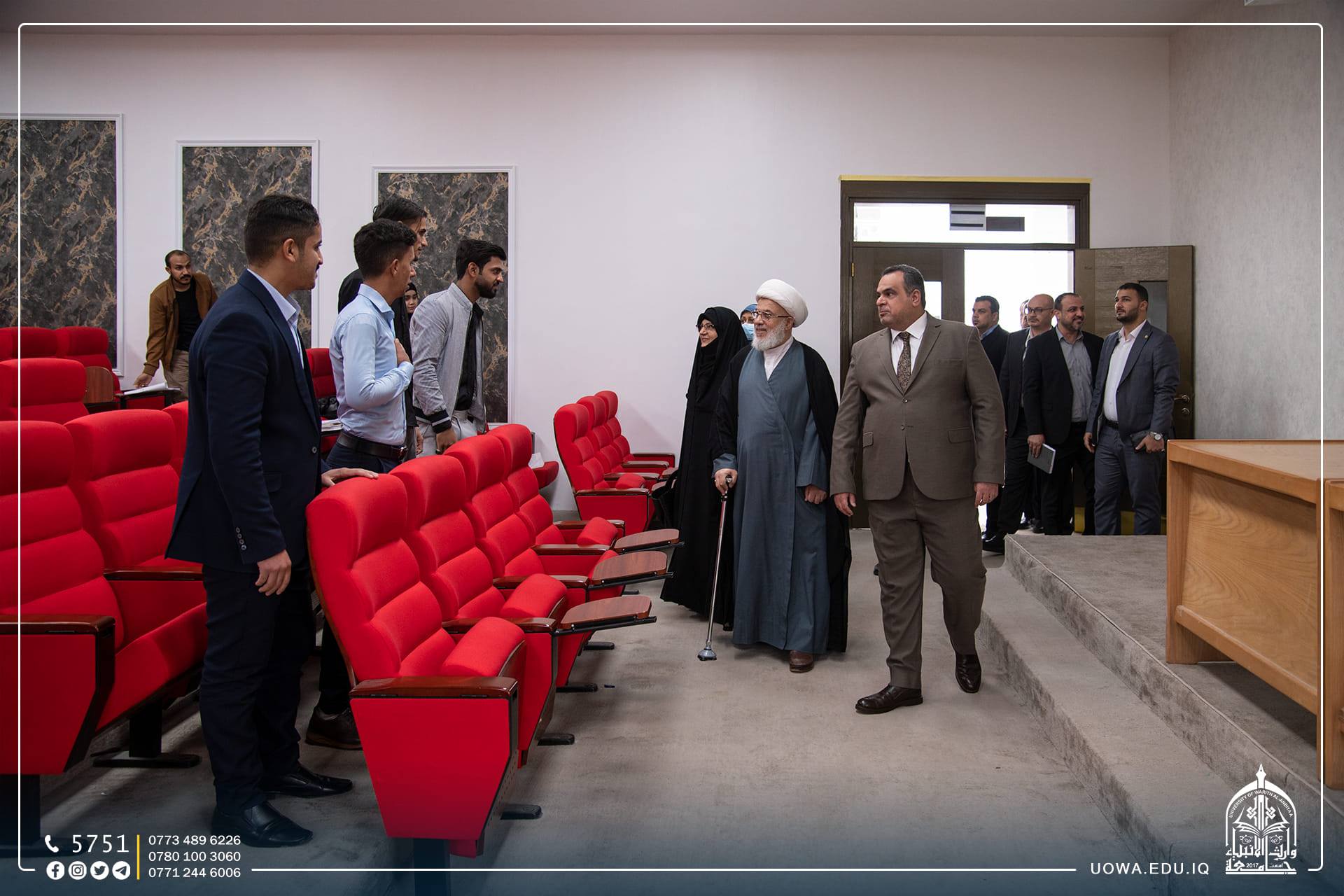للوقوف على التطور العلمي والاكاديمي في الجامعة، تفقد سماحة المتولي الشرعي للعتبة الحسينية المقدسة الشيخ عبد المهدي الكربلائي (دام عزه)، برفقة السيد رئيس هيئة الصحة والتعليم الجامعي الدكتور ستار الساعدي جامعة وارث الانبياء(عليه السلام)، وكان باستقبالهم السيد رئيس الجامعة الاستاذ الدكتور ابراهيم الحياوي.