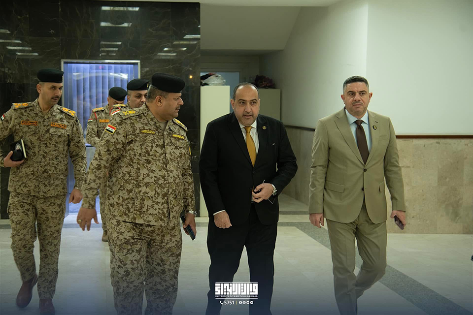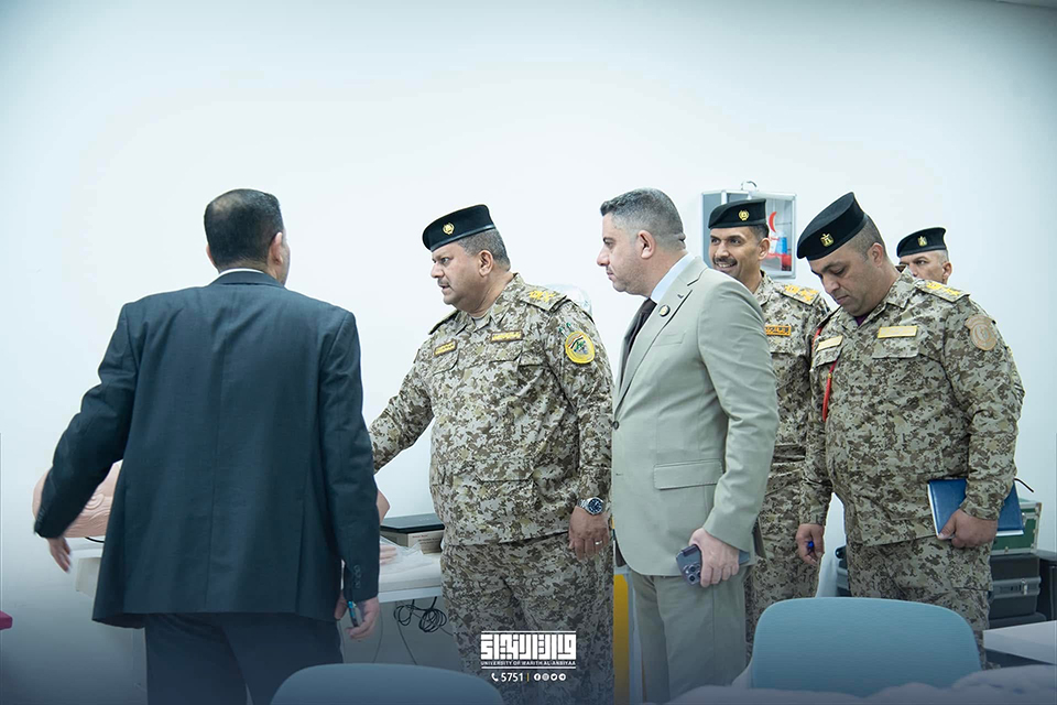 The President of the University of Warith Al-Anbiyaa (PBUH), Prof. Dr. Ibrahim Al-Hayawi, received Major General Dr. Qaisar Abdul-Razzaq, Director of Medical Rehabilitation and Wounded Care at the Ministry of Defence, to discuss prospects for scientific cooperation between the university and the Ministry.