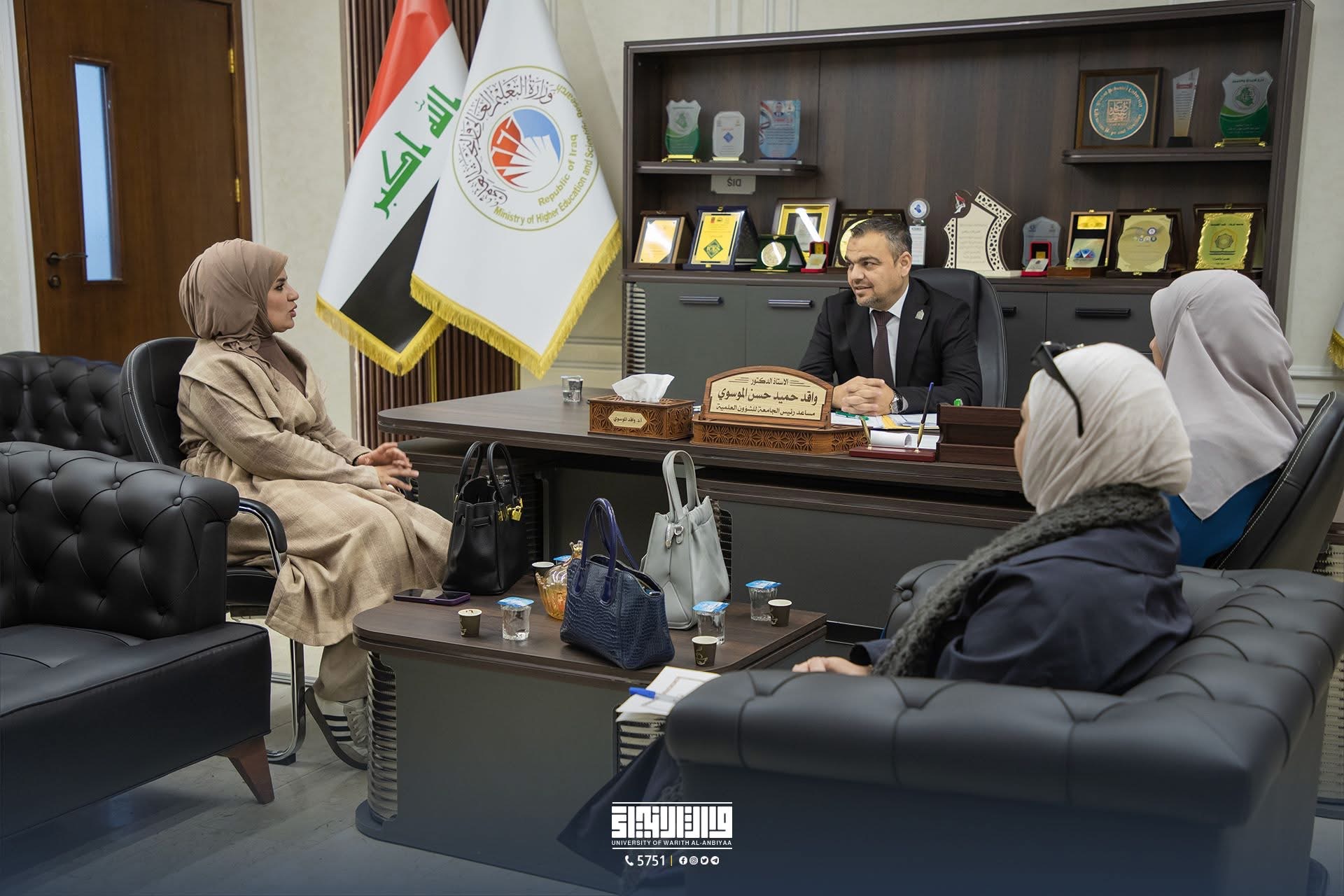 The Assistant for Scientific Affairs, Professor Waqed Al-Moussawi, and Dr. Haider Al-Ghanmi, Director of the Center for Continuing Education, received a delegation from the Ministry of Higher Education and Scientific Research, which visited the university to oversee the administration of the national examination in English, Arabic, and Computer Studies. The visit aimed to review the university’s procedures and ensure the provision of all necessary resources to facilitate the smooth conduct of the exams for postgraduate students. The committee emphasized the importance of creating a suitable environment and ensuring student comfort throughout the examination process.