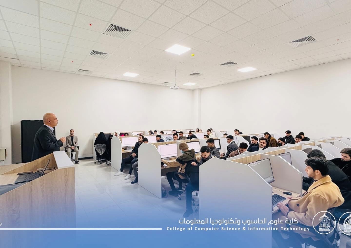 As part of the practical lectures for first-year students at the College of Computer Science and Information Technology – University of Warith Al-Anbiyaa (peace be upon him), students continue to apply the concepts of: