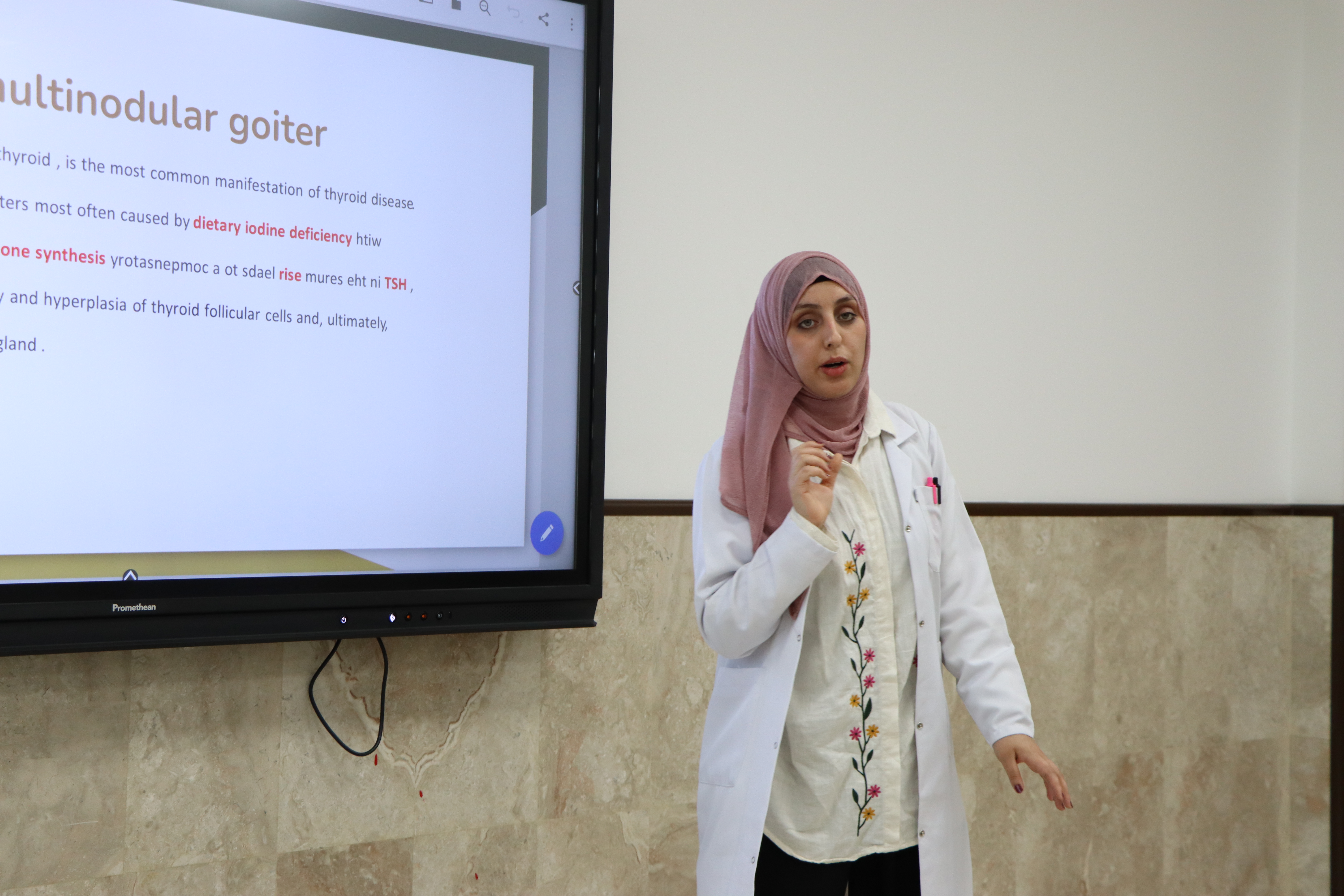 The Presidency of the University of Warith Al-Anbiyaa focused on practical lessons in order to achieve the greatest benefit for its students, and within the scientific activities of the Diseases Branch in the College of Medicine. A number of third-stage students presented scientific seminars and discussions in the presence of the dean of the college and the head of the branch, as this activity demonstrated wonderful benefits for our students.