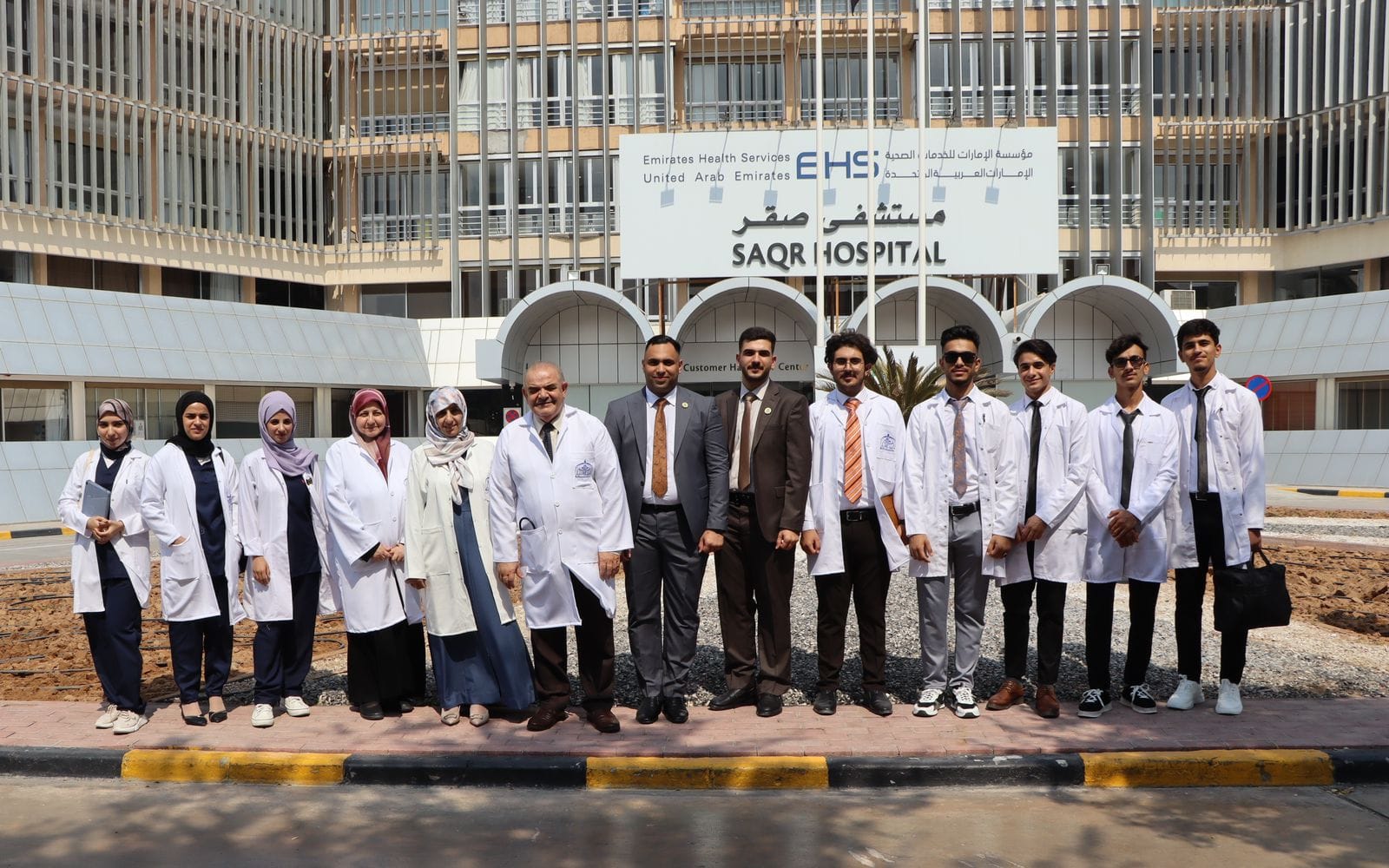 Under the supervision of Professor Dr. Munim Al-Shawk, Dr. Nasreen Jawad Kazim, and Dr. Sari Ghassan, medical students have commenced practical training courses at Saqr Hospital and Ras Al Khaimah Medical and Health Sciences University.