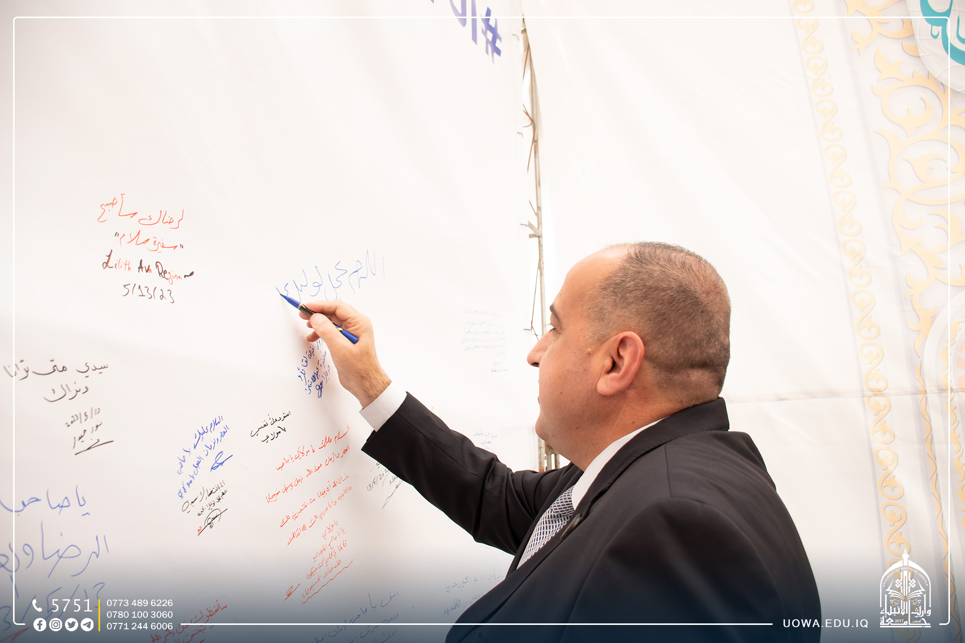The University of Warith Al-Anbiyaa (peace be upon them), in collaboration with the Center for Specialized Studies in Imam Mahdi (peace be upon him), organized the third Mahdiyya Tent Festival. The opening ceremony of this tent was inaugurated by Mr. Ibrahim Al-Hayawi, the university president. The purpose of this tent is to disseminate the correct Mahdi thought and strengthen the spiritual connection with the Imam of the Age, may our souls be sacrificed for him, for the university students.