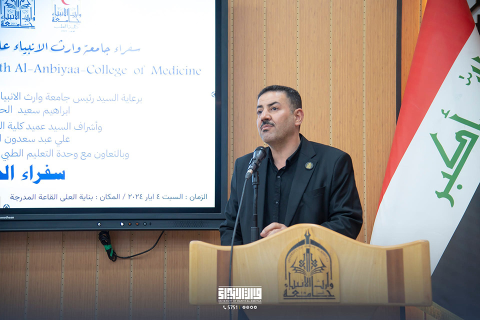 Under the patronage of the President of the University, Professor Dr. Ibrahim Saeed Al-Hayawi, and in the presence of the Dean of the Faculty of Medicine, Professor Dr. Ali Abd Saadoun Al-Ghazi, the Deanship of the Faculty of Medicine, in cooperation with the “Warith Elevate” team and the Department of Quality Assurance and University Performance, launched the project (Preparation and Selection of University Medical Ambassadors), which aims to represent the university and the country, whether locally or internationally.