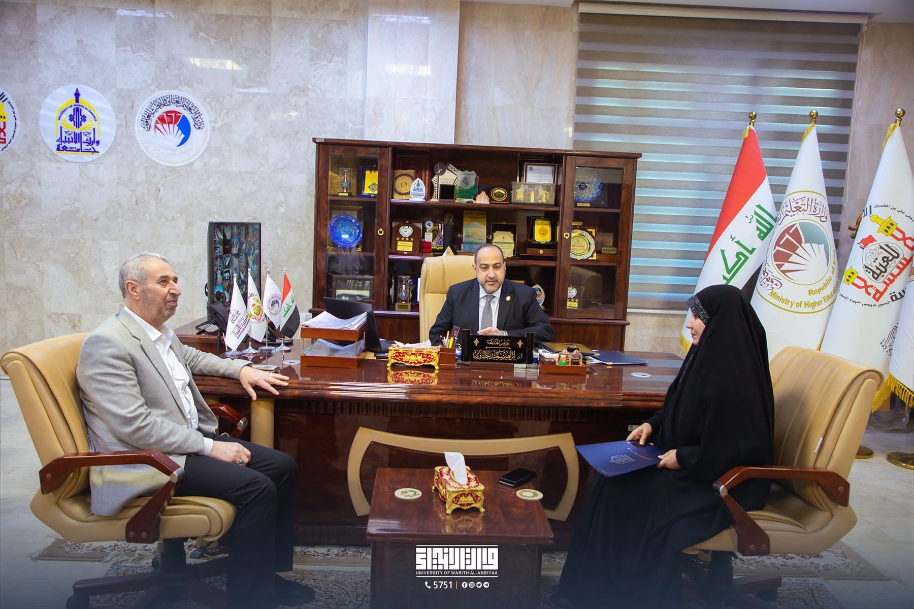 The presidency of Warith Al-Anbiyaa University, represented by Professor Dr. Ibrahim Saeed Al-Hayawi, extended congratulations to Professor Dr. Awad Al-Khalidi on the renewal of trust in him and his continuation as the Dean of the College of Administration and Economics, wishing him continued success in his academic and administrative career.