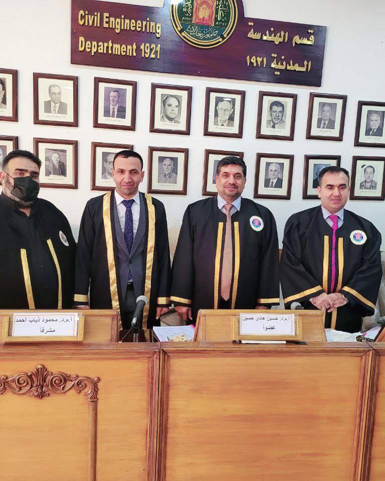 Assistant Professor Dr. Hussein Hadi, Assistant Dean of the College of Engineering, was chosen as a member to discuss a master’s thesis for one of the graduate students in the College of Engineering/Department of Civil Engineering at the University of Baghdad. For its part, the Deanship of the College of Engineering at the University of Baghdad presented a letter of thanks and appreciation to Dr. Hussein Hadi in appreciation for his efforts and endeavors in Supporting the educational process and integrating postgraduate students’ research.