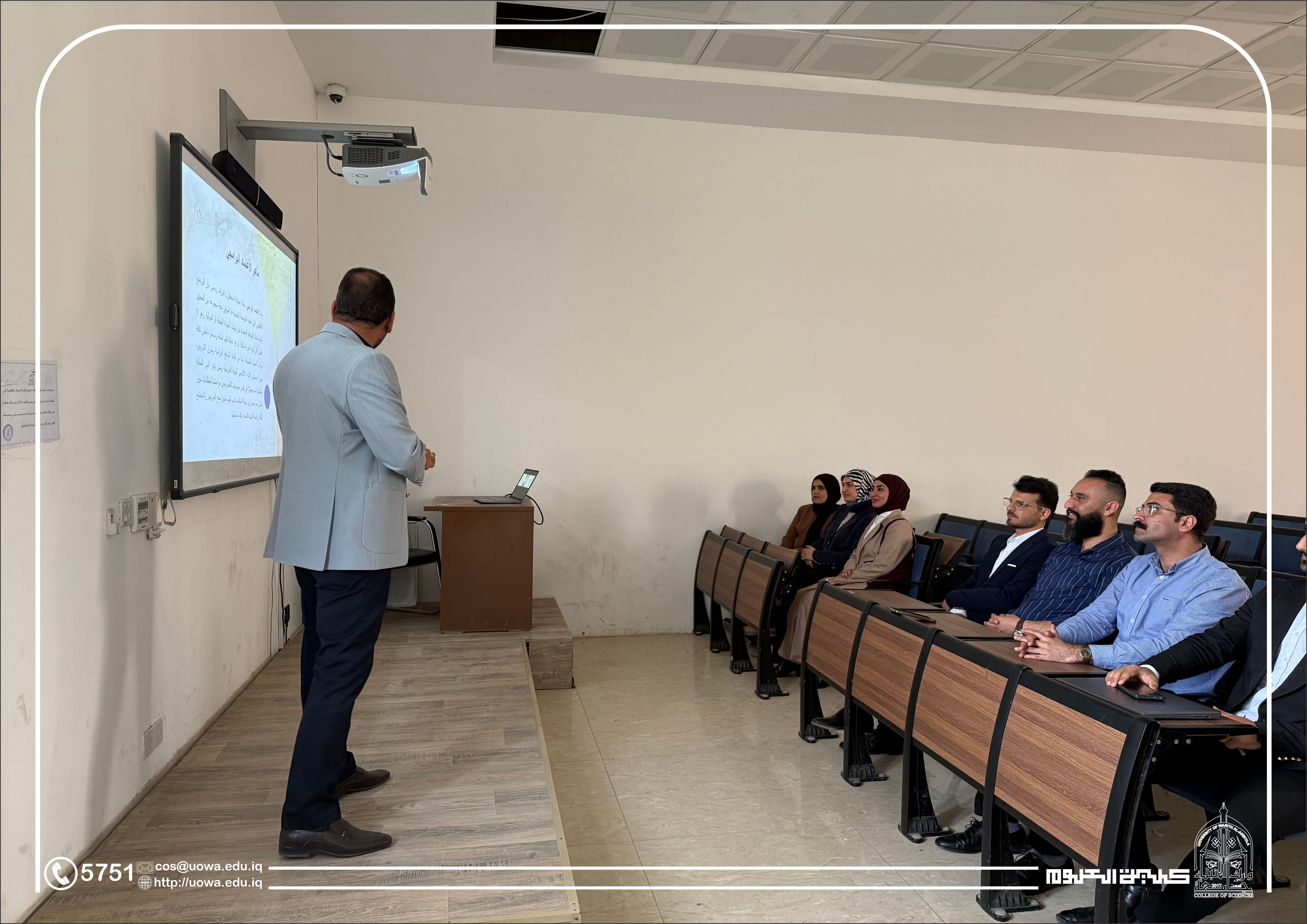 The College of Islamic Sciences held a scientific workshop titled “The Importance of Heritage and Documenting Historical and Religious Sites” in the College Council Hall, presented by Dr. Mohammed Abdul-Hadi Al-Amiri, with the attendance of a number of faculty members and staff.