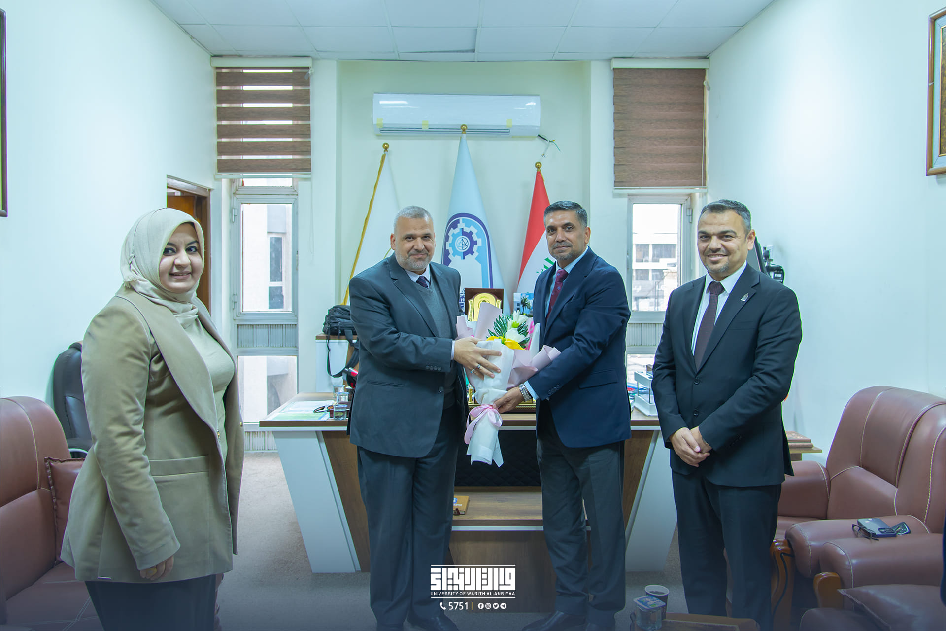 The university delegation included the Assistant Scientific, Dr. Waqad Al-Mousawi, the Dean of the College of Engineering, Dr. Hussein Al-Awadi, and his assistant Dr. Ali Basim. They were greeted by the President of Technological University, Dr. Ahmed Al-Ghban, and the Assistant Scientific Dr. Khawla Salah Khushan, along with heads of scientific and administrative departments at the university.