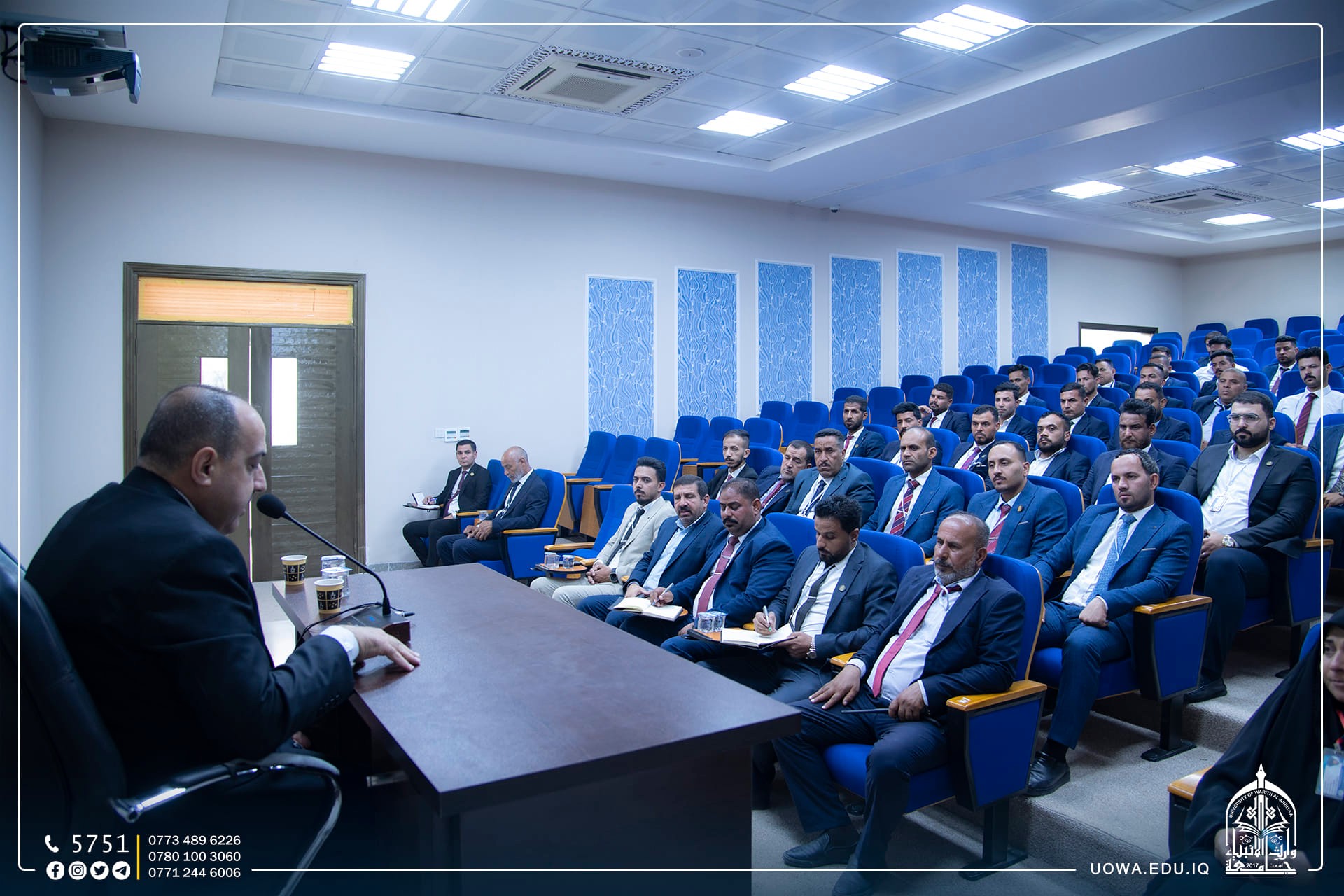 The Council of the University of Warith Al-Anbiyaa (peace be upon him) holds its regular session under the chairmanship of Professor Dr. Ibrahim Al-Hayawi and the membership of the university's vice-presidents for administrative and scientific affairs and the deans of the colleges to discuss a series of decisions that serve the university and its dear students.