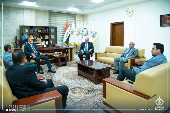 The University President, Professor Dr. Ibrahim Al-Hayawi, received a delegation from the College of Medicine at the University of Baghdad, led by the Dean of the College, Assistant Professor Dr. Ameen Abdul Hassan Al-Alwani. This visit was conducted to discuss the ways and possibilities of scientific cooperation between the College of Medicine at the University of Warith Al-Anbiyaa (peace be upon him) and the College of Medicine at the University of Baghdad in line with our university's vision and future aspirations to strengthen the educational process and benefit from the academic expertise that the College of Medicine at the University of Baghdad possesses to train and prepare our students. It is worth noting that the University of Warith Al-Anbiyaa (peace be upon him) is taking steps to keep up with the robust educational landscape by entering international rankings through partnerships and twinning with prestigious local, Arab, and international universities.