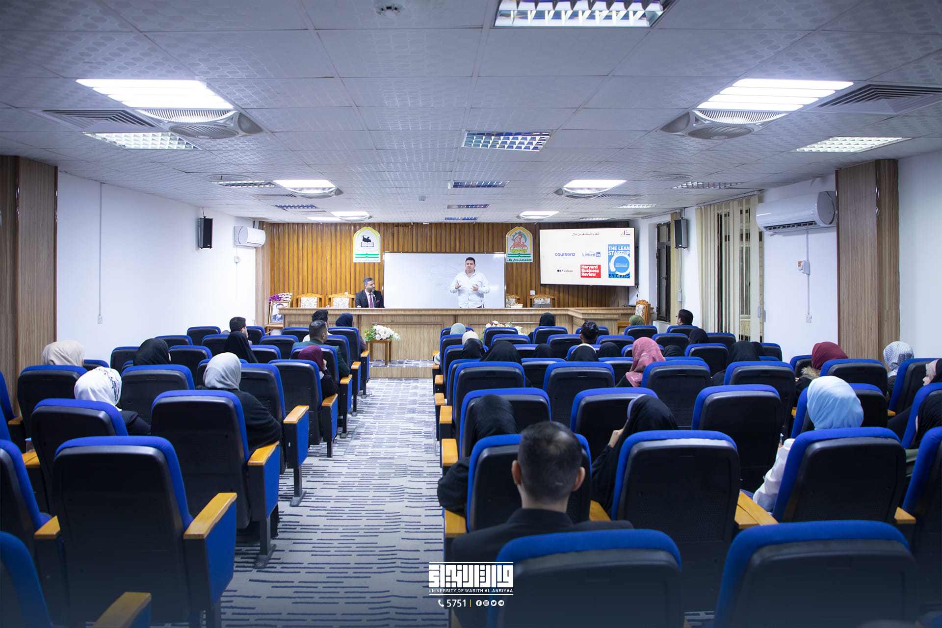 The Department of Business Administration at the College held a scientific seminar titled "Skills Required for the Job Market." The event was attended by the Dean of the College of Management and Economics, Dr. Awad Al-Khaldi, along with several faculty members. The seminar was presented by Mr. Azhar Al-Rikabi.