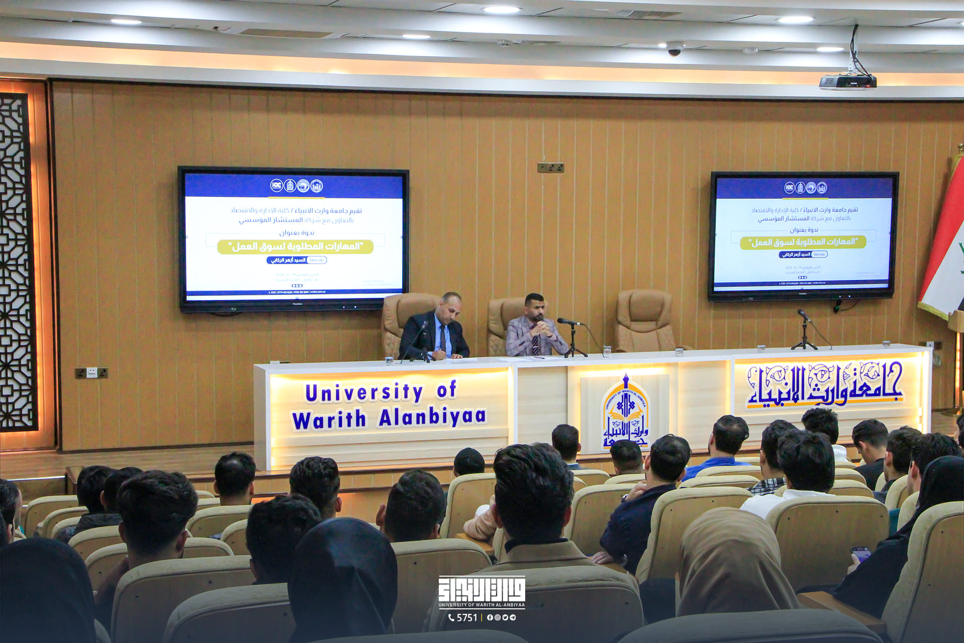 On February 19, a workshop titled "Developing Life Skills" was conducted at Warith Al-Anbiyaa University (peace be upon him), in collaboration with the Warith Center for Entrepreneurship, Innovation, and Development. The workshop was specifically designed for first-year students at the College of Medicine and was facilitated by trainer M.M. Safaa Al-Silawi.